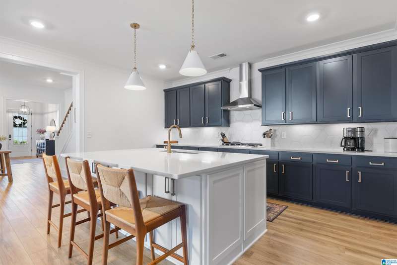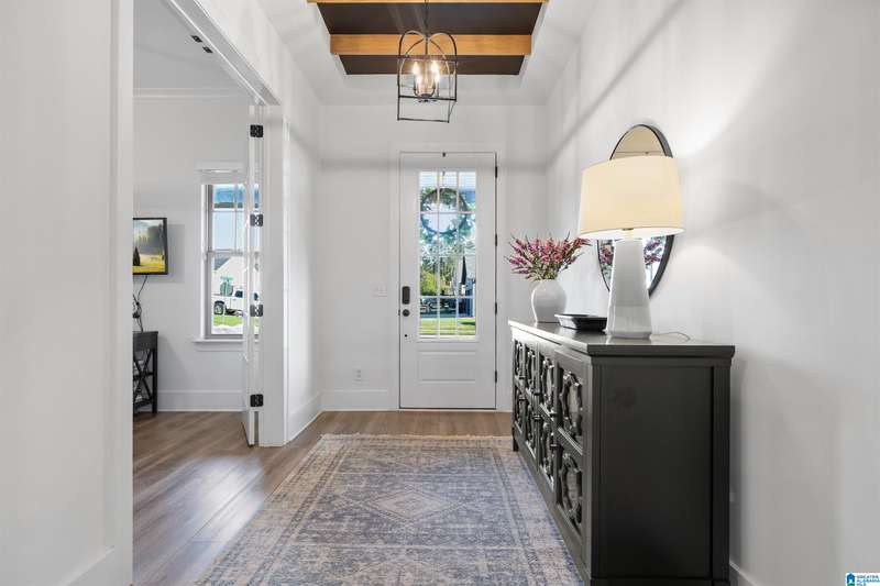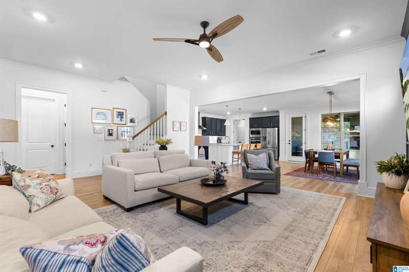 This former model home on Colton Rd (where homes get a driveway, private yard & nature view) is a beauty! Enjoy a community-focused neighborhood! Walk to shops, restaurants, the neighborhood grocery, the Finley Center & more! Stroll sidewalks & common green spaces, meet neighbors in the clubhouse, or entertain them on your front porch or covered back patio (with gas fireplace!). Inside, open spaces, high ceilings, great natural light & designer finishes await you. The French door office & wood beam ceilinged foyer greet your guests before they flow into the spacious living, dining & kitchen entertainment space. Your designer kitchen has a fantastic island/breakfast bar, quartz, gas, stainless, under cabinet lighting, dbl pantry - everything you'd expect - just steps from the ML garage, mud/drop-off, laundry & powder rooms. The luxurious primary suite offers a walk-in closet, garden tub, sep vanities & sep shower. Secondary den, 2 spacious bedrooms w/ walk-ins & a full bath upstairs.