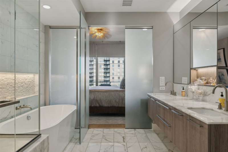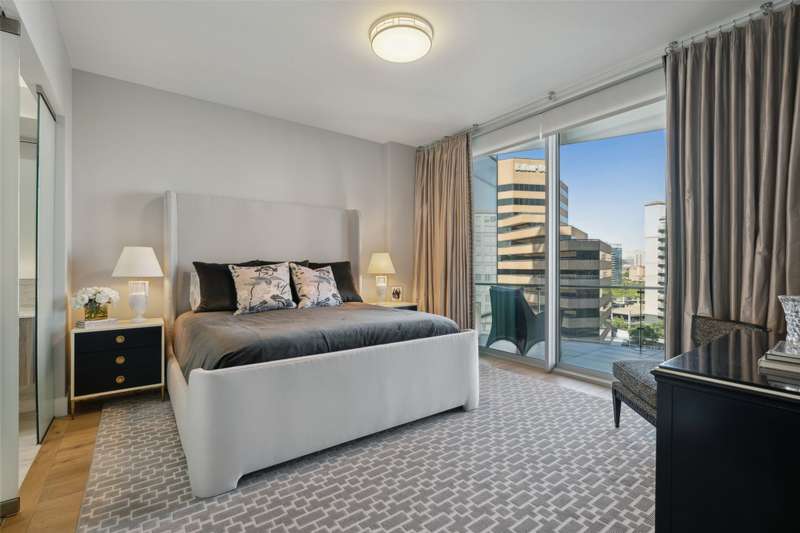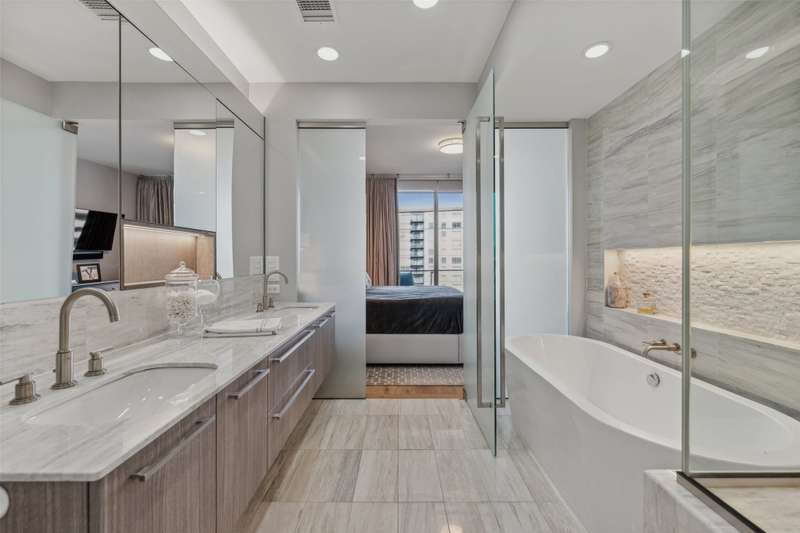 Step into this light-filled, sophisticated Bleu Ciel residence, beautifully designed by interior designer Tobi Fairley. The open, airy layout is complemented by an expansive balcony that seamlessly blends indoor and outdoor living, featuring a cozy fireplace and stunning Northeast views of the Dallas perfect for entertaining or simply relaxing. This home boasts several thoughtful upgrades, including custom window treatments, designer lighting, and California Closets in both bedrooms and the laundry room, optimizing storage and space. Located in the vibrant heart of the Harwood District, you're just steps away from top-tier dining, shopping, Uptown, Klyde Warren Park, the Arts District, and Downtown Dallas.As a Bleu Ciel resident, enjoy exclusive access to world-class amenities, including a resort-style pool, a fully equipped fitness center, and a luxurious owners spa with steam room, sauna, hot tubs, and a massage room. A private, spacious two-car garage with additional storage space adds convenience, and pet lovers will appreciate the pet-friendly atmosphere. Electric vehicle charging stations are also available for your convenience.With direct access to The Katy Trail, Bleu Ciel offers an unparalleled urban lifestyle in the heart of Dallas.
