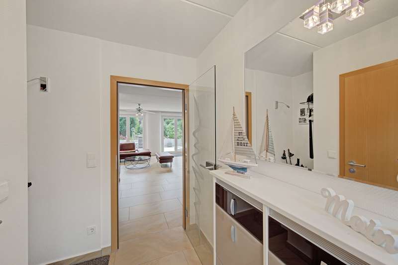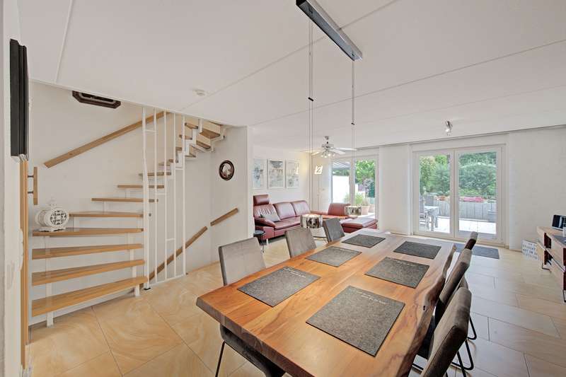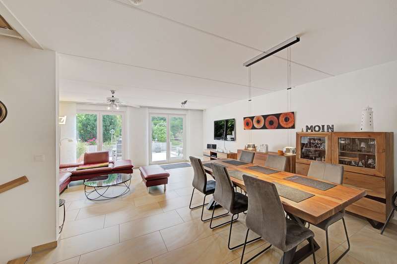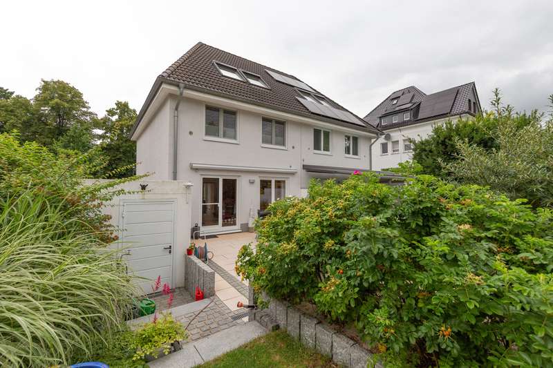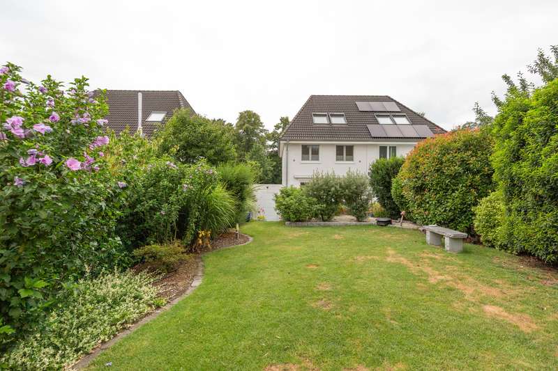 Here you will find a very well-kept semi-detached house with a full basement built in 2011, with a living space of approx. 123.84 m². The plot size is approx. 412 m² and offers enough space for a family. The property impresses on the one hand with its family-friendly location and on the other with its spatial concept. The highlight on the first floor is the entrance hall, the guest WC and the open kitchen, as well as the spacious living and dining room with floor-to-ceiling windows offering a fantastic view of the garden. The terrace and garden can be accessed from here. Following the staircase to the upper floor, you reach the master bedroom, two children's or guest bedrooms and the spacious daylight bathroom with bath and shower. The converted attic studio provides an additional room and offers further potential uses. There is also a separate WC on this level. The property is in a very well-kept condition. An extra-long garage completes the offer. Have we aroused your interest? For reasons of discretion, we will be happy to provide you with further information on this property on request. We look forward to a personal meeting.
