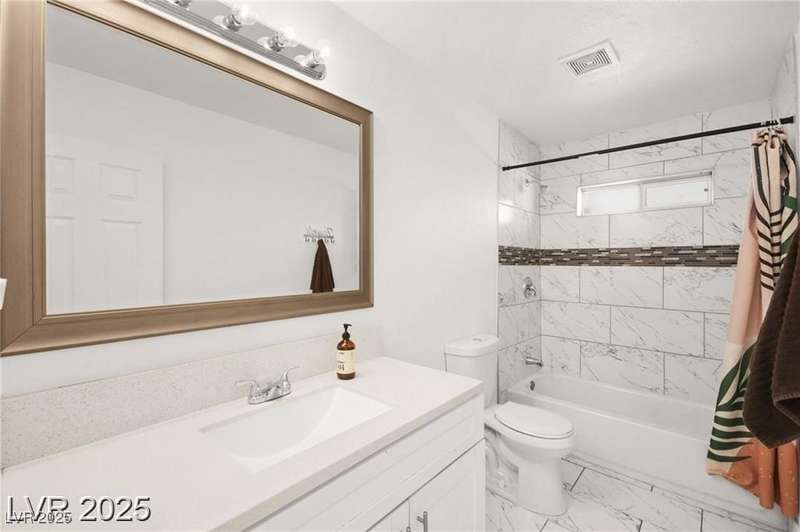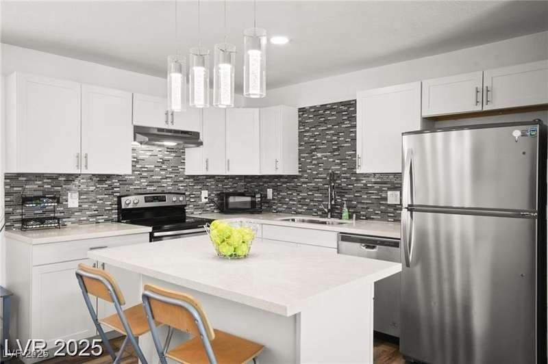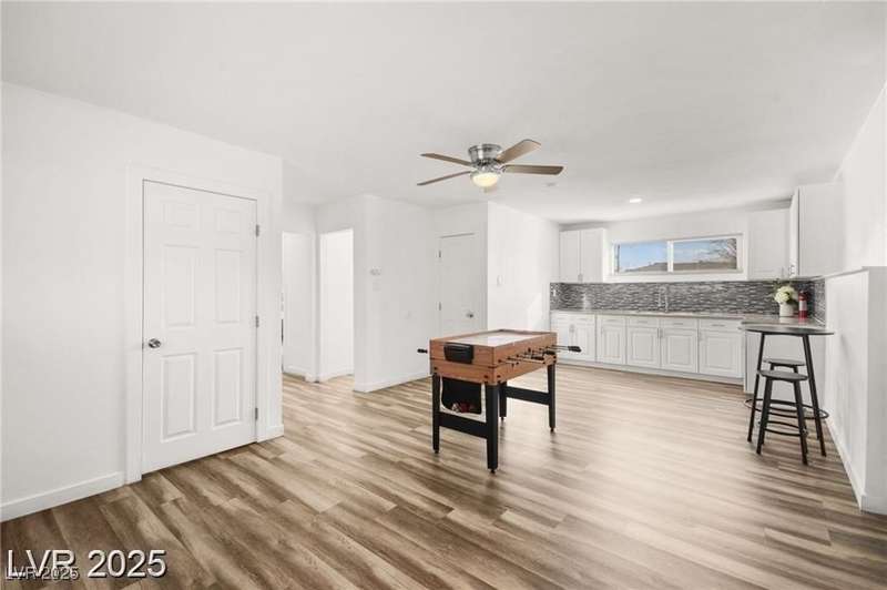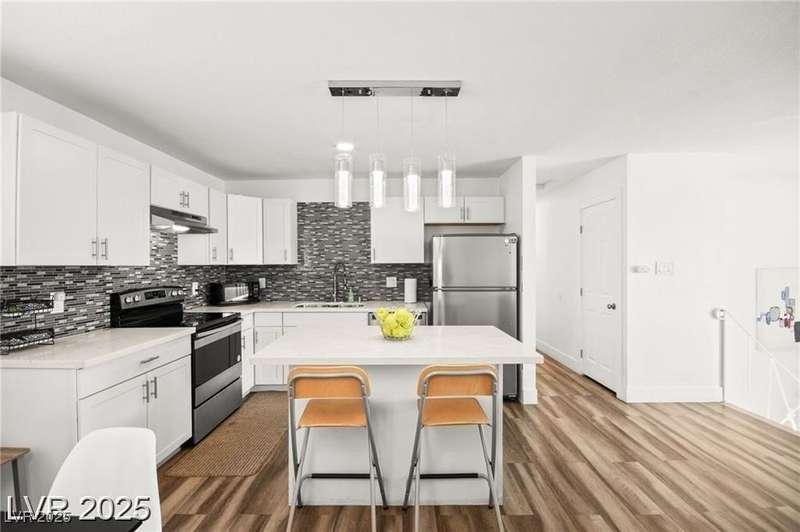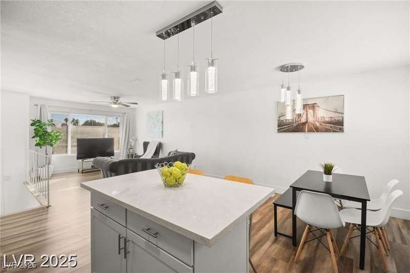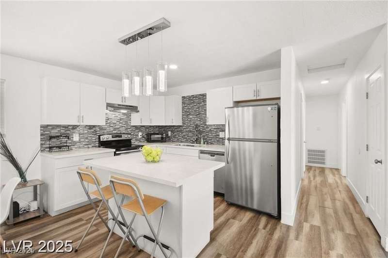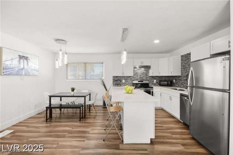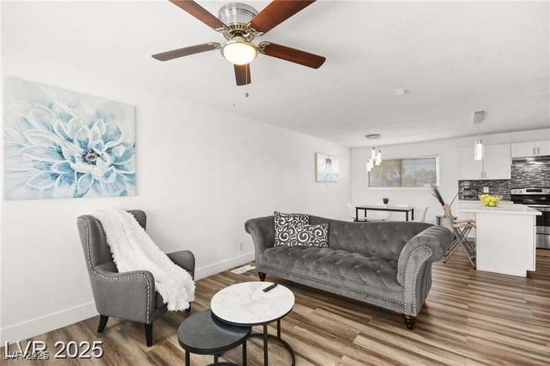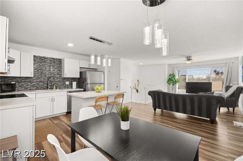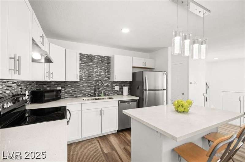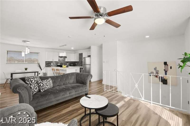 Welcome to this beautifully maintained, move-in-ready 2-story home, perfectly situated in the heart of Las Vegas with no HOA! Recently upgraded with a brand-new AC unit ($10,000 value) and new roof ($8,000 value), this home also comes fully furnished with over $12,000 invested in high-quality furniture and finishes—offering a truly turnkey experience. Step inside to discover a bright, open-concept living space with upgraded flooring and abundant natural light. The modern upstairs kitchen features stainless steel appliances, ample cabinetry, an island, and a spacious dining area—perfect for meals or hosting. Downstairs, enjoy a second living area with a wet bar—an ideal setup for entertaining or relaxing. Conveniently located near top shopping, dining, and major freeways, this home offers the perfect blend of comfort, style, and location. Don’t miss your chance to own this exceptional property—schedule your private tour today!