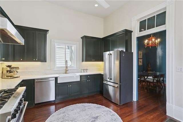 This beautifully updated Eastlake Victorian camel-back is just 3 blocks from Magazine Street, 9 blocks from Audubon Park, and 1 block from Jefferson Avenue, located on a quiet street in the "Golden Rectangle" area of New Orleans. Combining historic charm with modern designer touches, this lovely home is an oasis just steps from shopping and dining. Featuring 3 bedrooms, 2 baths, and a flexible room that opens to a private back courtyard, the home also includes an inviting screened-in porch on the second floor. Main floor bedroom currently enjoyed as an office/den was used by previous owners as a main floor primary bedroom. Numerous updates enhance both style and function, including a new fortified roof (which has significantly reduced the current owners' property insurance!), newly installed AT&T fiber-optic Internet, refinished hardwood floors, updated electrical and lighting, designer ceiling pendants, refurbished upstairs walk-in closets, a tankless water heating system, resurfaced and painted walls and ceilings, new plumbing fixtures in the baths and kitchen, and a newly remodeled kitchen with professional appliances (36" Bluestar range, Café French Door refrigerator, Bosch dishwasher, new vent hood). Additional improvements include new Andersen windows on the second level, new exterior lighting and irrigation. X flood zone.