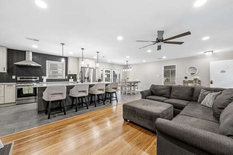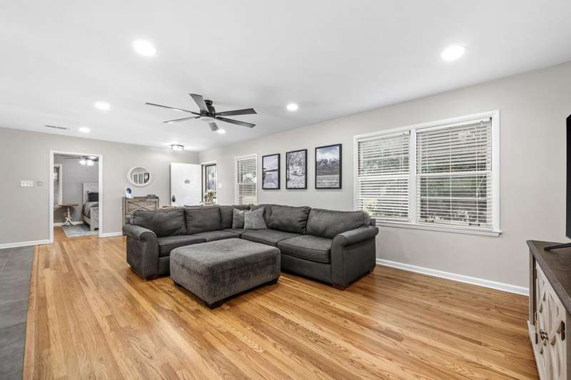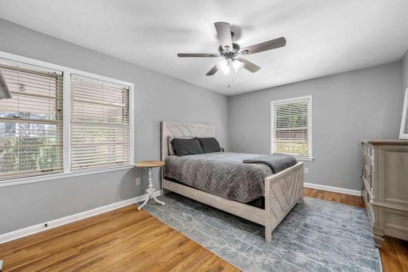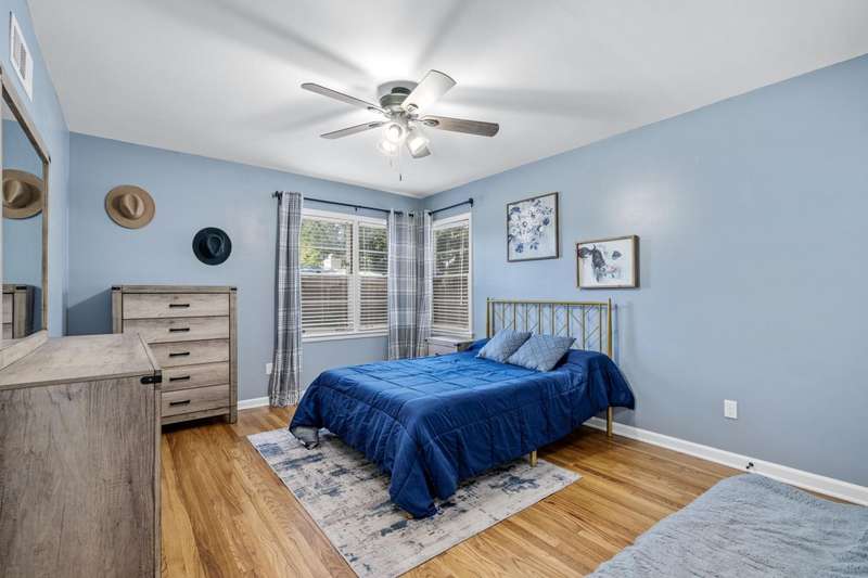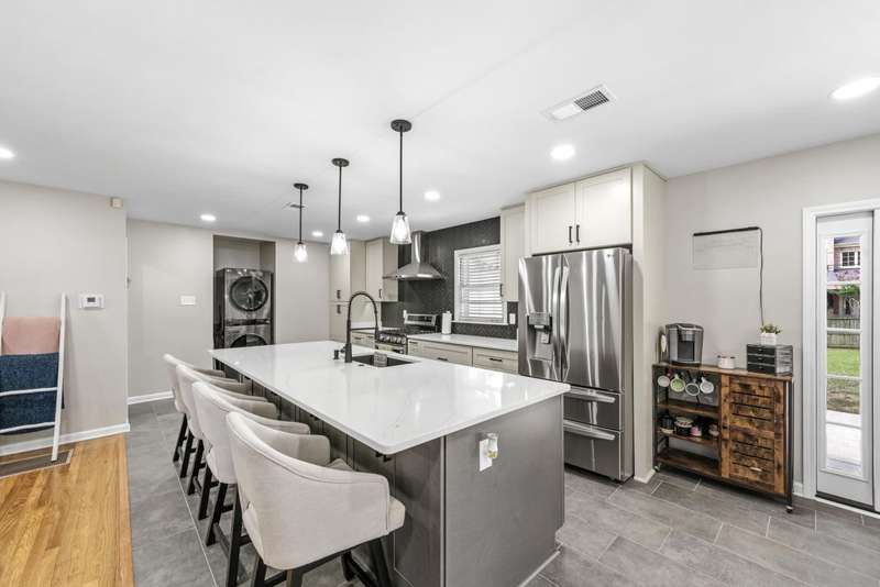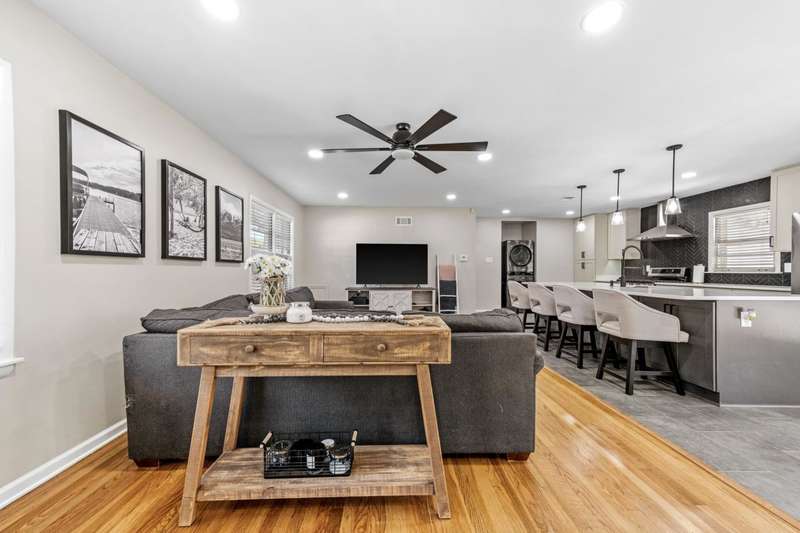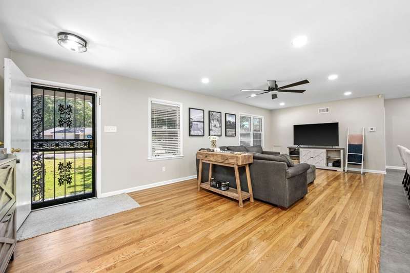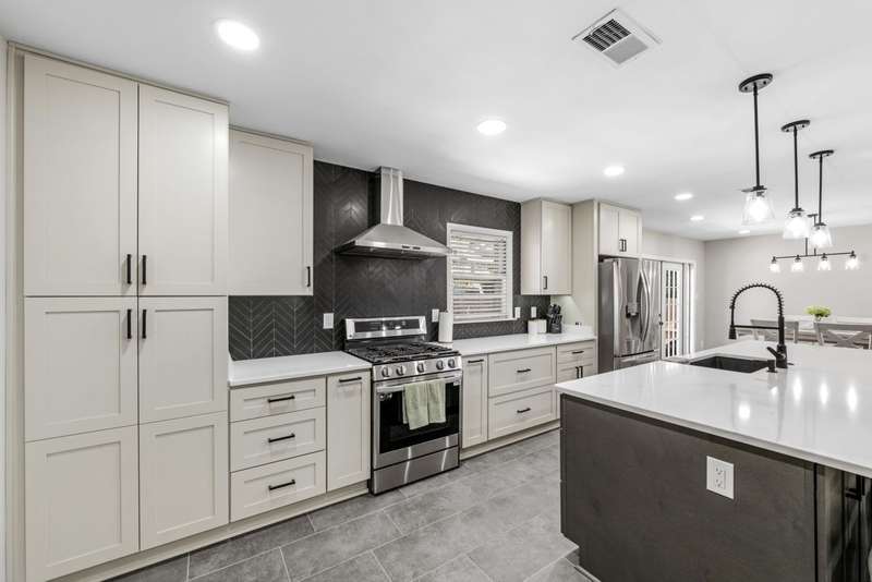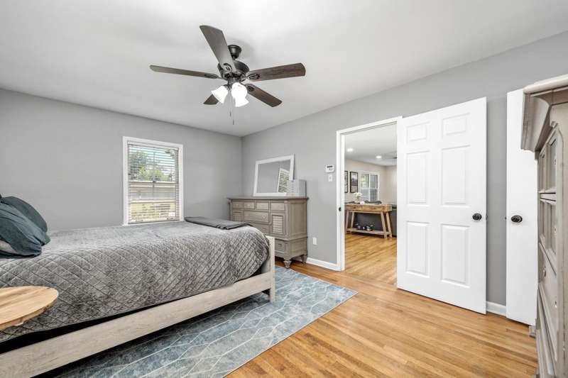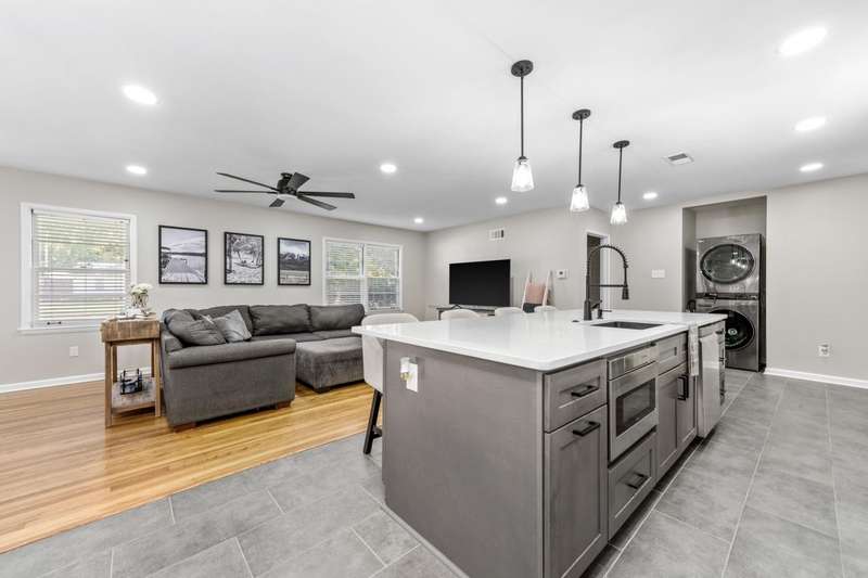 Welcome to Greenway Gardens, a community where lots are prized, you'll find a blend of well-kept original homes & luxury new builds! This home, renovated in 2024, boasts an open-concept design showcasing hardwood floors & beautiful tile work. The chef's kitchen is a showstopper, featuring quartz countertops, a large island w/ seating, stainless steel appliances including gas cooking & built-in microwave, soft-close cabinetry, & a stylish backsplash. The split floor plan provides added privacy, w/ one bedroom currently used as an office. Bathrooms include a fully renovated hall bath w/ rainfall shower, new vanity, & tub, while the second retains its vintage charm. Outdoors, you'll enjoy a spacious, shaded backyard w/ chicken coop, a 1,000 sq ft patio w/ footers (ideal for a future addition), & a storage room w/ roll-up door...perfect for a workshop or gym! Covered parking for two adds convenience. Located near grocers, retail, & dining! Ask about assumable 5.9% loan. A MUST SEE gem!
