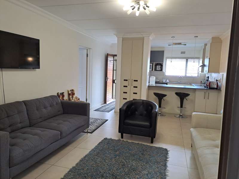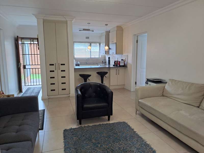 2 Bedroom Townhouse for sale in Kyalami Beautiful modern 2 Bed, 2 Bath apartment, with double carport. Situated in the sought-after Riverbend Estate in the Kyalami Hills area. This stunning ground floor apartment is perfect for a couple or young family, or for investment. This apartment offers an enclosed patio with stacking doors, that opens up to a private garden. The patio leads a spacious open-plan lounge. The modern kitchen has Caesarstone tops, a breakfast counter and space for 2 appliances and a fridge. Both the bedrooms are en-suite and have laminated flooring. The one bedroom has a bathroom with a beautiful bath with a shower, while the second bedroom has a shower. The apartment has an inverter with batteries, recently replaced. There is additional storage on the outside of the apartment. This complex is in a great location and has excellent security. There is a pool and recreational centre in the complex. Riverbend Estate is in close proximity to highways and schools as well as shopping centres. This beautiful apartment is well worth a look. Contact me to arrange a viewing! Disclaimer: Whilst every care has been taken in the preparation of this listing we cannot be held responsible for any errors/omissions that may occur.