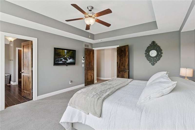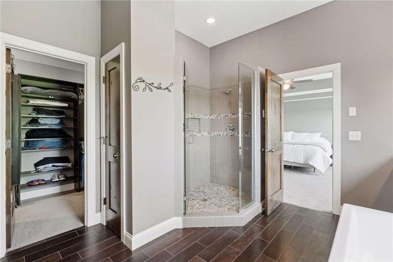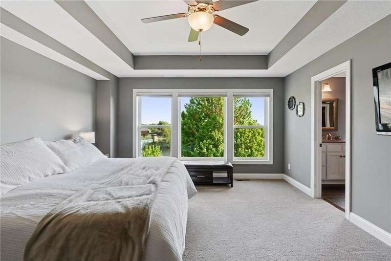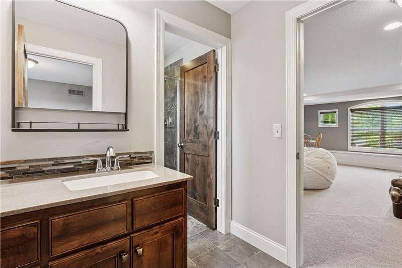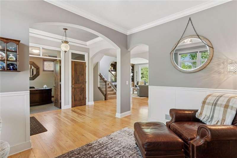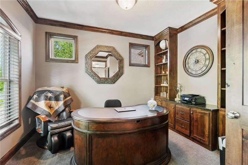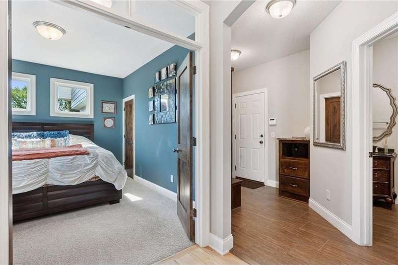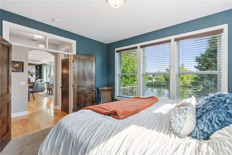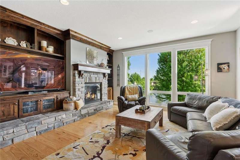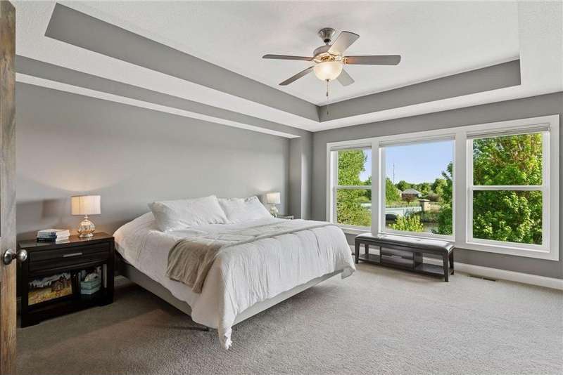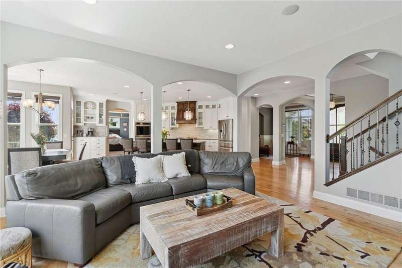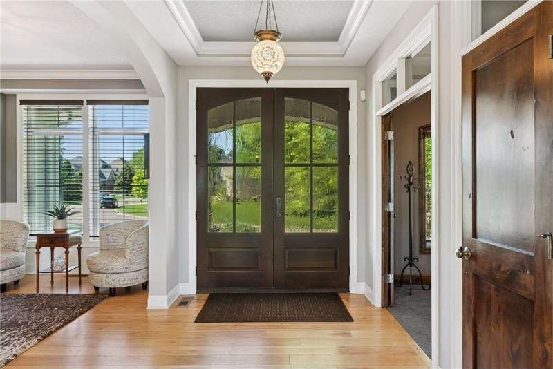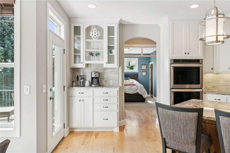 Welcome to this exquisite one-owner lakefront home, custom-built by award-winning Hanson Builders, showcasing unparalleled craftsmanship and timeless elegance. Nestled in the heart of The Lakes community on Sunrise Lake, this stunning 5-bedroom, 5-bathroom residence spans almost 5,400 square feet of meticulously designed living space, offering a perfect blend of luxury and comfort. Step inside to discover an open-concept main level featuring soaring ceilings, gleaming real site-finished hickory hardwood floors and abundant natural light. The gourmet kitchen is a chef’s dream, featuring top-of-the-line stainless steel KitchenAid appliances, granite countertops, a spacious center island, coffee bar, and custom cabinetry. The adjacent living room, with its cozy gas fireplace and built-in knotty alder shelving creates an inviting space for gatherings. Entertain your guests in the formal dining room or use it as a flex-space for reading and relaxing. Work from home? We have you covered with the private main floor office with French doors and custom-built cabinetry to store all your work items. A main floor “flex room” can also double as a bedroom or be used as a sunroom to look out at the lake. Upstairs, the primary suite is a true retreat, complete with a tray ceiling, walk-in closet, and a spa-inspired ensuite with dual vanities, a soaking tub, and a walk-in shower. Three additional bedrooms, one with a private ¾ bath and the other two share a jack and jill bath with separate tub and shower, are also conveniently located on the upper level. Unwind, watch a movie, have family game night, or get some homework done in the amazing bonus room! The lower level offers a versatile family room with warm fireplace and custom wet bar with full size refrigerator, ideal for entertaining your guests. An additional bedroom and exercise room complete the lower level. There’s also additional storage space under the stairs and in the mechanical room. Outside, the professionally landscaped yard features a maintenance-free deck and a serene custom paved patio and fire pit, perfect for enjoying Minnesota’s seasons. The oversized 4-car garage with floor drain provides plenty of storage and is completely insulated and ready for a garage heater. Additional storage is located in the garage and also in a backyard attached “shed” to store all your beach and lake toys. Located just minutes from top-rated schools, parks, shopping, and easy access to I-35W, this home combines suburban tranquility with urban connectivity. Impeccably maintained and thoughtfully designed, this masterpiece is ready for its next chapter. Schedule your private tour today to experience luxury living at its finest!