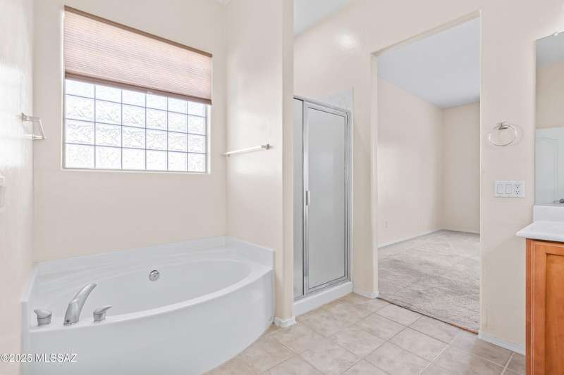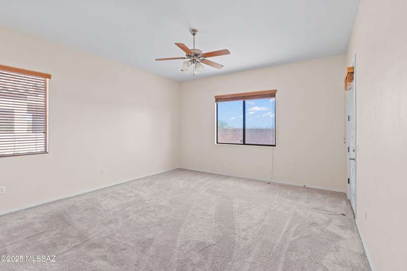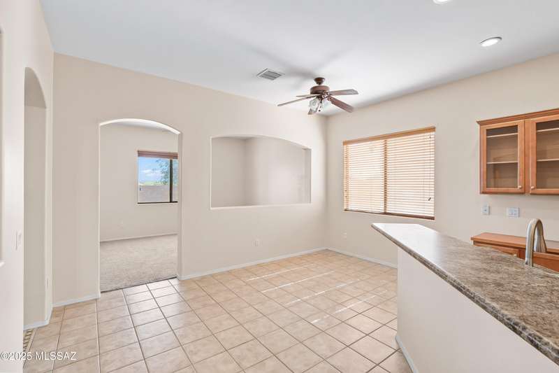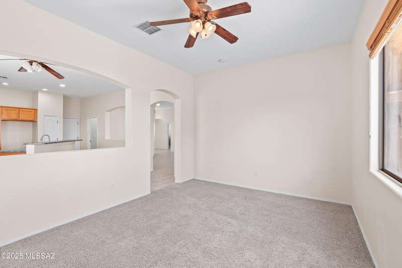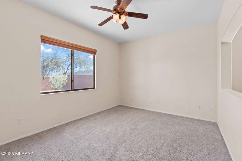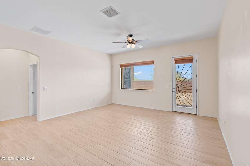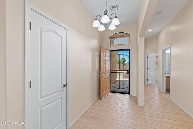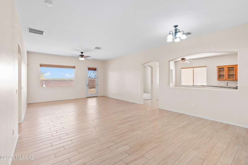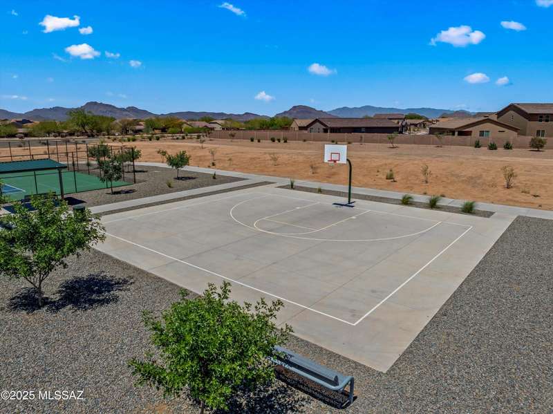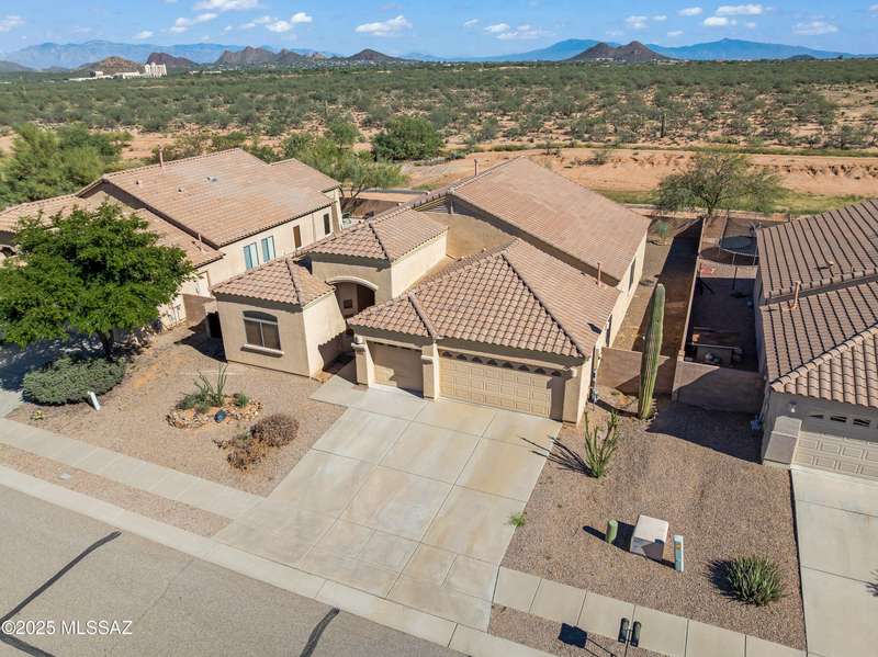 Welcome to this spacious 4-bedroom, 2-bath home in the Star Valley community of Tucson. Offering 2,338 sq ft, this residence features high ceilings, a split bedroom layout, and an inviting living room. The kitchen is equipped with black appliances, pull-out cabinets, new garbage disposal (Nov. 2025) and connects easily to the dining area and bonus den/office. The primary suite includes a walk-in closet, double vanity, soaking tub, and shower. Outside, enjoy a 3-car garage, covered patio, and a large backyard with no rear neighbors--bordering open tribal land for unobstructed desert and mountain views. Community perks include a park, basketball court, and dog park, with easy access to I-10, I-19, shopping, dining, and more.