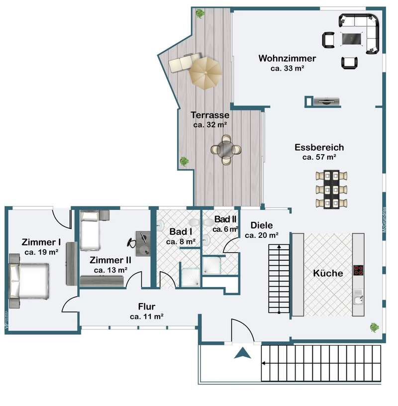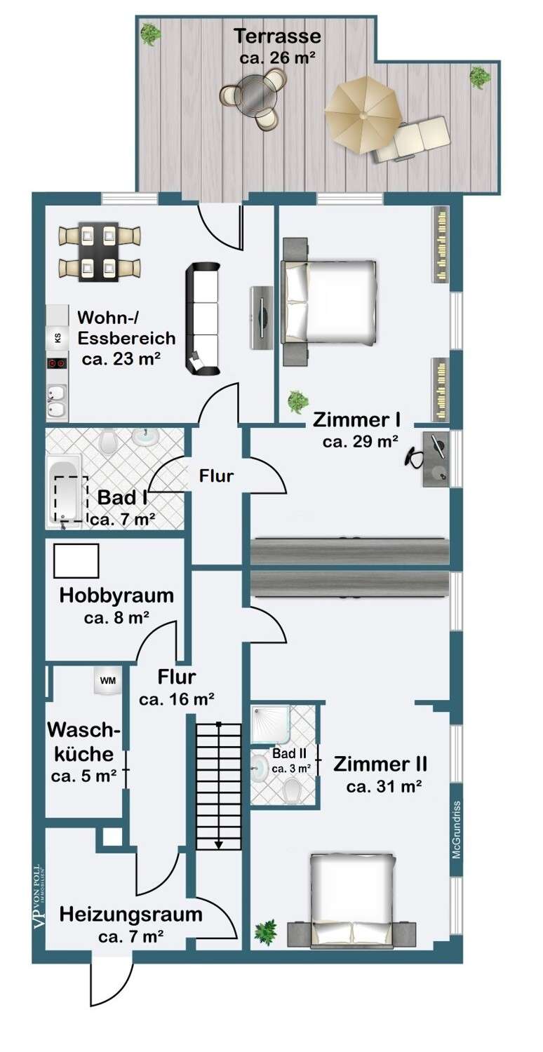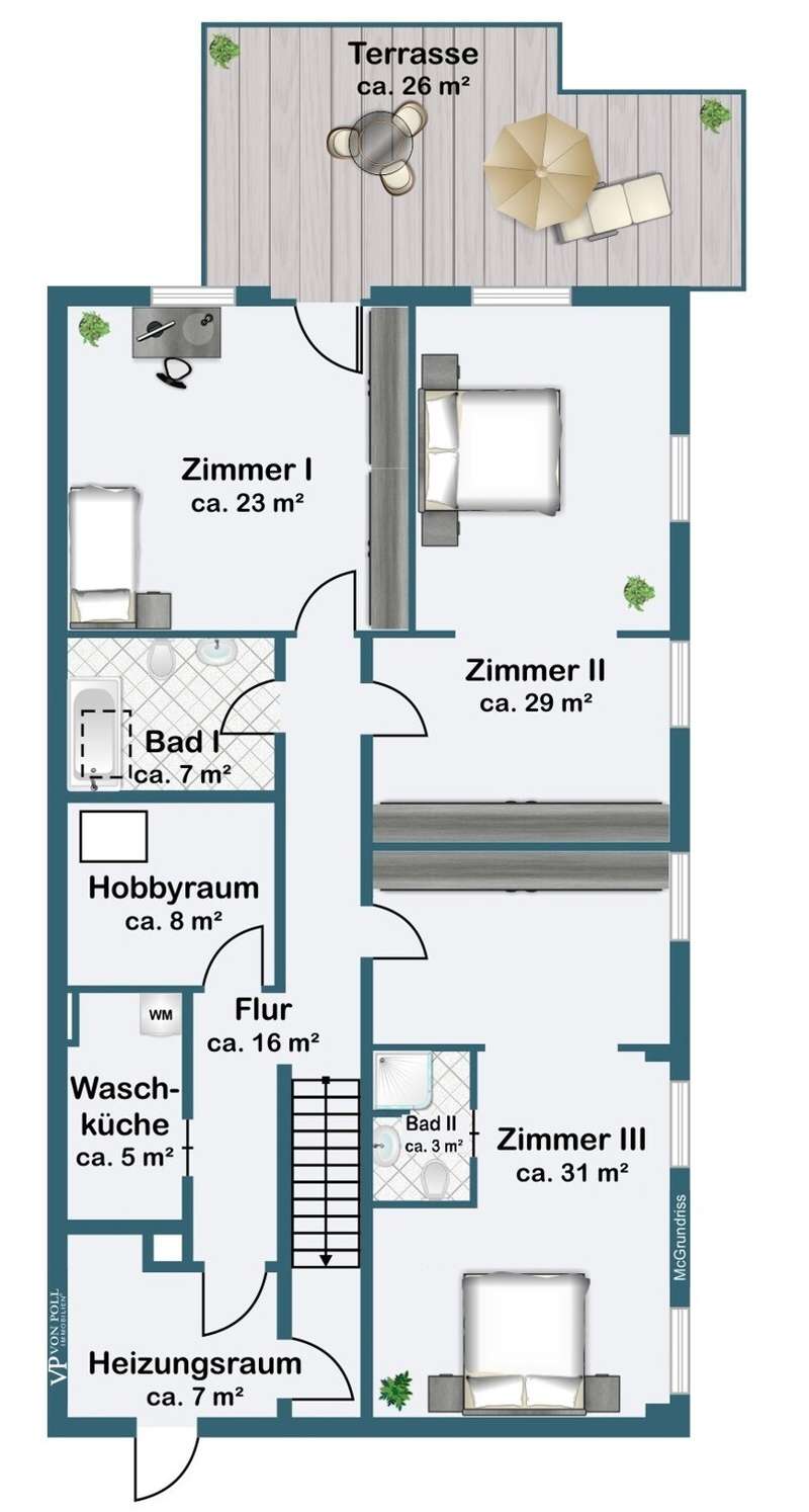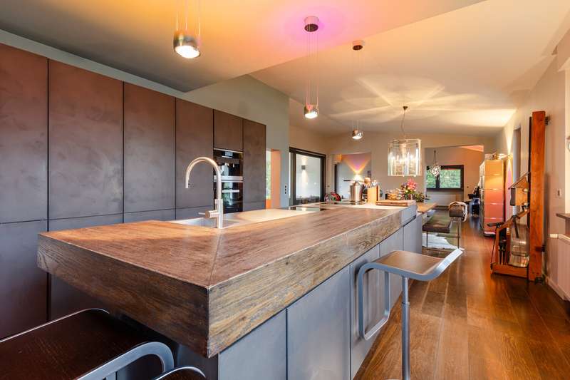 This villa combines timeless elegance with modern living comfort. On approx. 298 m² of living space and a generous plot of approx. 1,102 m², a home is being created that combines style, quality and comfort at the highest level. The modern six-bedroom villa impresses with its clearly structured floor plan. The loft-like living/dining area with open-plan kitchen and direct access to the spacious garden is a particular highlight. Five flexibly usable bedrooms and four modern bathrooms offer plenty of space for the whole family. The high-quality fittings are impressive down to the last detail: elegant, oiled floorboards, a custom-made "Leicht" fitted kitchen with Miele and Bora appliances, a stylish exposed fireplace in the living and dining area and large windows with triple glazing and electric shutters create a harmonious living ambience. The villa was extensively renovated in 2007, 2016 and 2018. The windows, roof and alarm system are state of the art. The efficient oil condensing heating system is also supplemented by solar collectors. The outdoor area is also impressive: the well-tended garden with mature trees, automatic irrigation system and several terraces invites you to linger. An outdoor pool provides refreshment in summer, while the garage and additional parking space offer practical convenience. The garden level opens up numerous possibilities for individual use and development. It currently comprises three spacious rooms, two bathrooms and several smaller ancillary rooms. The direct access to the private garden via a spacious terrace and to the pool and main garden area of the villa is particularly attractive. This floor can also be flexibly designed - for example as an independent garden apartment, a modern home office or an exclusive area for sport and wellness (see floor plan variant 2). Another advantage is the separate entrance with its own house number, which is ideal for guests or house staff. All in all, this is a stylish home for discerning people who value spaciousness, quality and an exclusive living environment - ready to move into.