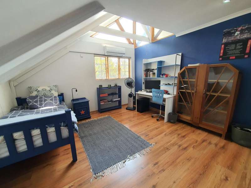 A Spacious Family Retreat with Timeless Charm This renovated double-storey home combines character, space, and modern convenience ?Çô the perfect fit for a growing family who loves to entertain. Offering six bedrooms and four bathrooms, the home is designed with flexibility and comfort in mind. Inside, classic Oregon pine floors blend seamlessly with contemporary finishes in the kitchen and bathrooms, creating a warm yet stylish living environment. Ground Floor: The open-plan lounge and dining room, anchored by a cozy fireplace, flow into a sleek modern kitchen. Three generously sized bedrooms are located downstairs, including a luxurious main bedroom with an en suite bathroom and private balcony. Upstairs: Two expansive bedrooms with soaring ceilings invite natural light, while a third versatile room can be used as an additional bedroom, home office, or creative space. Outdoor Living: The covered patio overlooks a landscaped garden and sparkling pool, offering the ideal setting for summer braais and relaxed family gatherings. An outdoor entertainment room, storeroom, and separate laundry ensure added practicality. Additional Highlights: Bathroom with potential for cottage conversion Solar power system for energy efficiency Double stand with dual entrances Parking for up to five vehicles Pet-friendly This home is more than just a place to live ?Çô it?ÇÖs a sanctuary offering space, lifestyle, and versatility for the modern family.