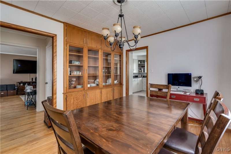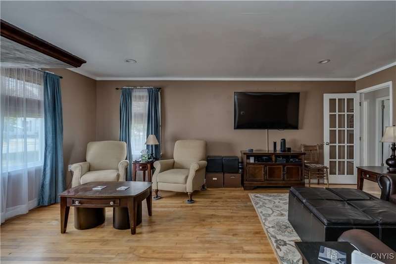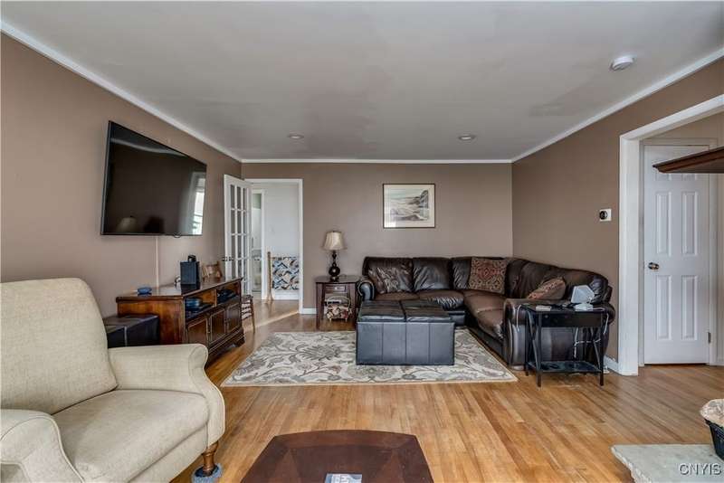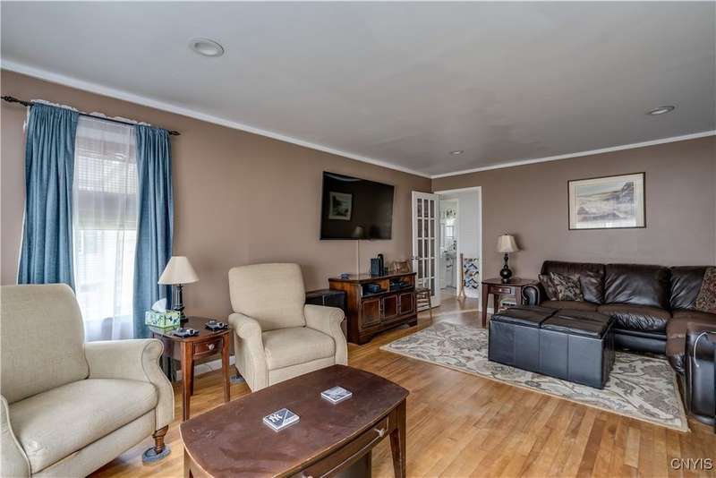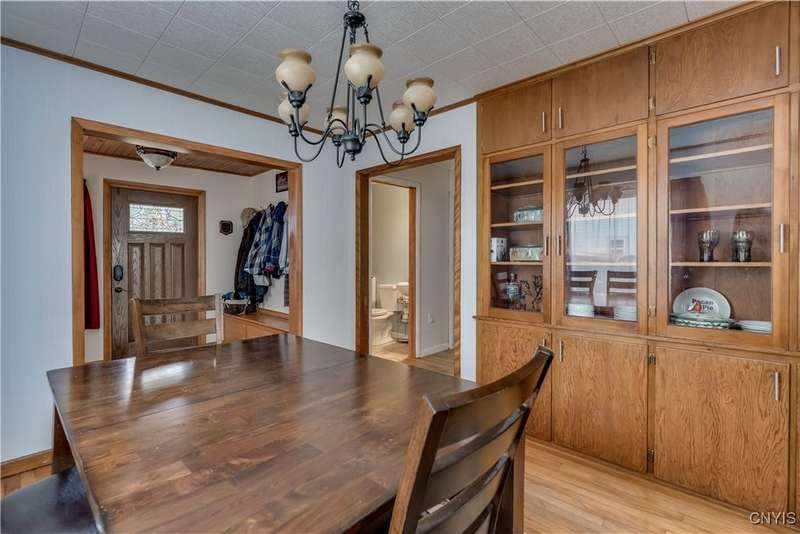 Turn key RANCH located in the Village of Philadelphia & close to Fort Drum. This spacious home has CENTRAL AIR, 3 bedrooms, two with original hardwood floors & the 3rd w/laminate floor and a single murphy bed (currently being used as a mancave), full bath w/tile floor, half bath w/tile floor and laundry, large bright living room w/ hardwood floor & wood burning fireplace, front entryway w/tile floor & built-in bench, formal dining room w/hardwood floor & built-in china cabinet, good size kitchen w/ breakfast bar, full basement with exterior walk out entrance to to the back yard & garden area & a detached 2 car garage. This home has had numerous updates to include roof (4 years old), forced warm air furnace (5 years old), house repainted (2025), new kitchen flooring & kitchen cabinets painted (2025) & new interior doors (2025). This home has so much to offer and shows true pride of ownership both inside and out. Don't delay, call today to schedule your private showing. **FAST CLOSING POSSIBLE**.