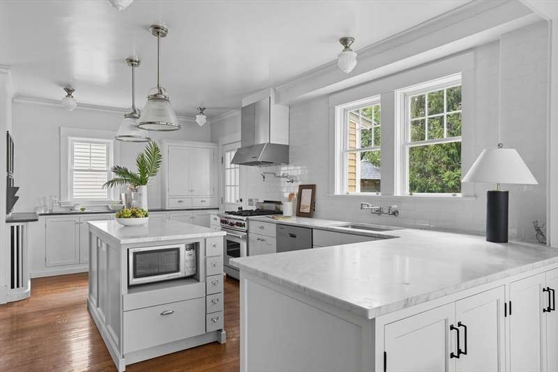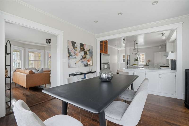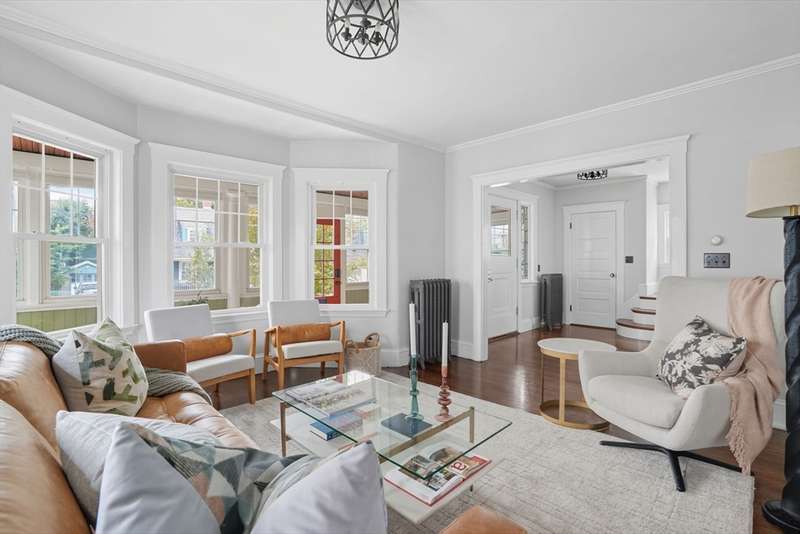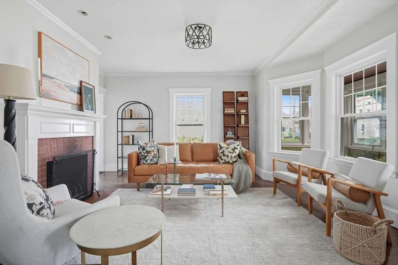 This beautifully updated Colonial combines vintage charm with modern comforts on one of West Medford s most desirable blocks. A welcoming front porch and gracious foyer open to a sun-splashed first floor, featuring an open kitchen/dining area with honed Bianco Carrara and Vermont soapstone countertops, custom cabinetry, and a Wolf range. The living room, with its wood-burning fireplace and intricate mantle, highlights the home s timeless woodwork, high ceilings, and hardwood floors. The elegant family bath has been thoughtfully renovated with a spa-like shower and soaking tub. Other recent updates include a 2015 roof, foam insulation, upgraded electrical, interior paint, and refreshed landscaping. Complete with a two-car garage, this home is nestled in a coveted enclave just steps to the commuter rail.