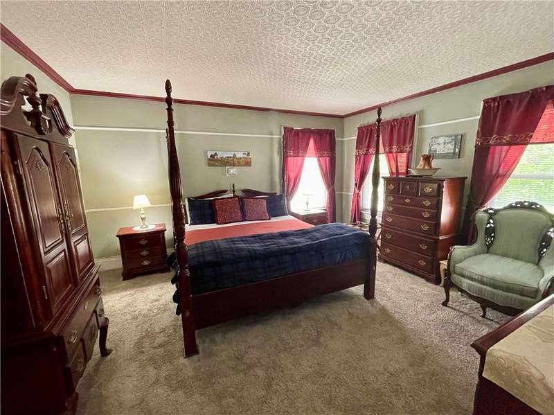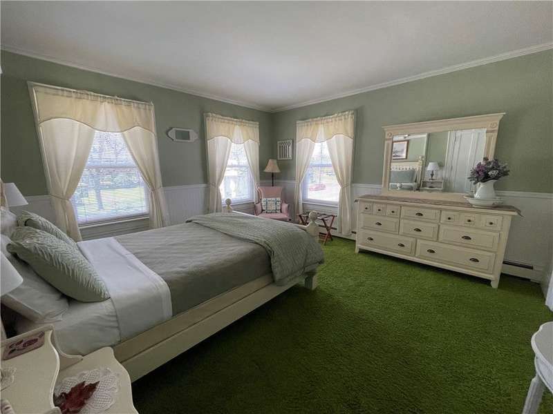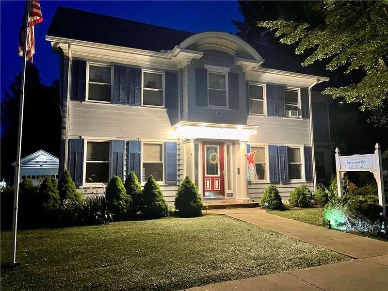 Circa 1875 Center Hall Colonial is presently an operating as The Splendor Inn Bed & Breakfast with 6 guest bedrooms and 4 guest baths (2nd & 3rd floors). The finished basement is used as owner's quarters and includes bedroom with attached full bath, large family/rec room and laundry room. This home has been lovingly preserved through the years and pride of ownership is evident! Walk into a large front entry with a high back entry seat & stunning lead glass side lights. The kitchen was remodeled in 2019 including new cabinets, granite countertops & flooring. A walk-in butler's pantry between the kitchen and large formal dining room is perfect for storage and coffee/tea bar! The dining room has a beautiful window seat overlooking the back yard, patio and small deck. The living room is truly spacious with pocket French doors and a pretty fireplace with original mantle. Downstairs there is also an enclosed and heated sunroom, half bath and a black walnut paneled office/library with pocket doors. The 2nd and 3rd floors boast large bedrooms & modern baths which guests love and would also be great for single family living, extended family or Airbnb. The seller has made many improvements: newly paved driveway (including the base, 2022), new decking outside the rear entrance (2020) and exterior paint on the house and garage (2023 and 2024). There is also room for some additional parking behind the garage. Maintenance free yard has AstroTurf in place! The office or the sunroom could possibly be used as a downstairs bedroom(s) if needed, and there is very easy access (one step) from the rear of the home. This home can be sold with most of the furnishings or as a turnkey B&B. There is an attached improvement list and an attached history/ overview of the bed and breakfast.