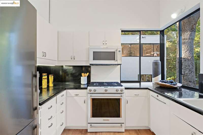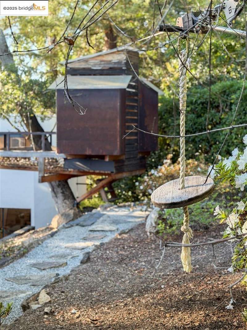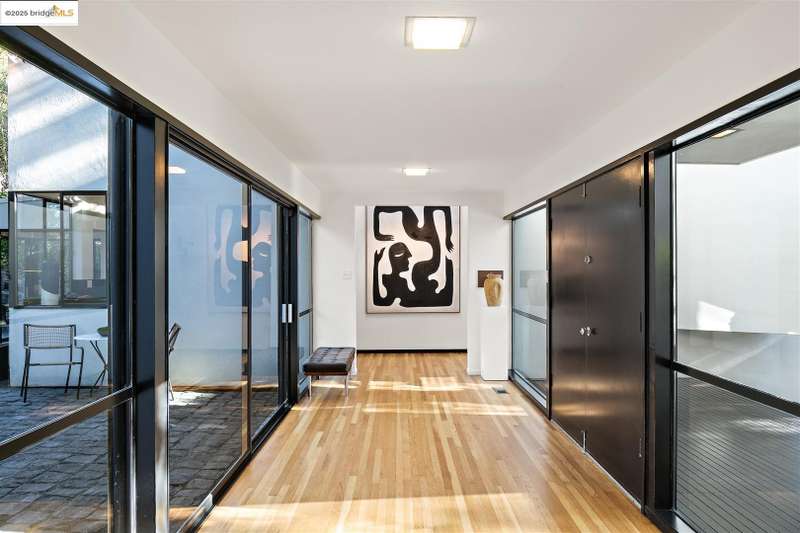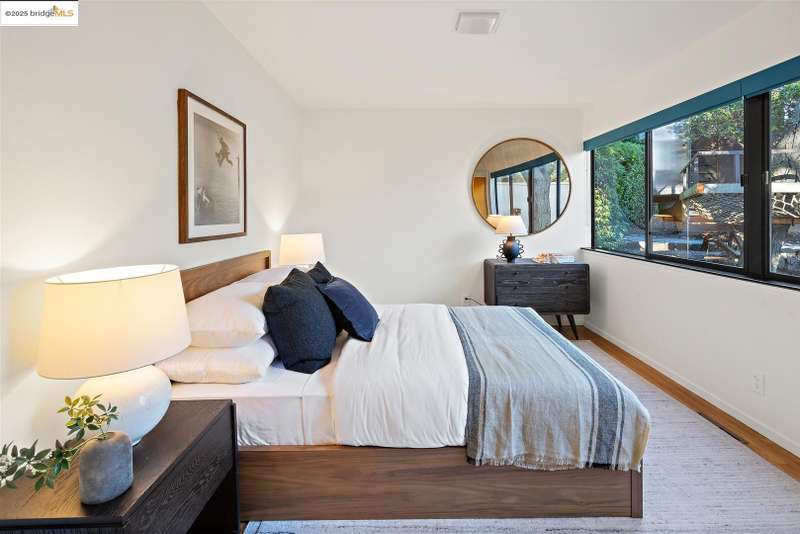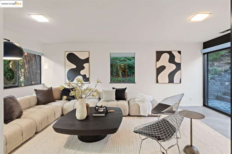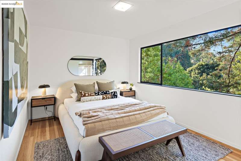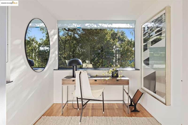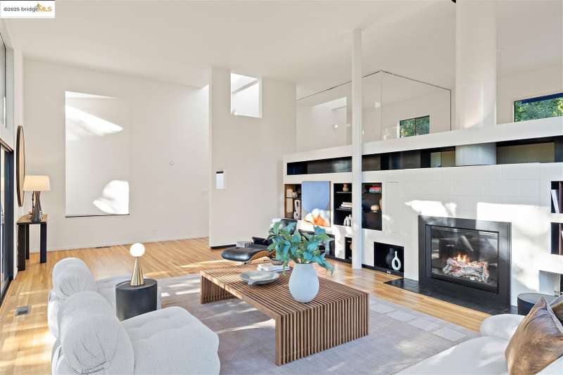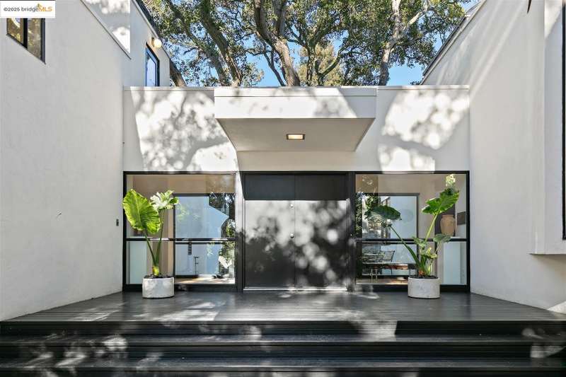 Architectural legacy meets California tranquility in this AIA-recognized residence by acclaimed architect Donald Olsen. Built in 1967 for his close friend David Ruth, this mid-century modern architecture includes a friendly floorplan with 4 bedrooms and 3 full baths, showcasing Olsen's signature integration of geometry, light, and nature. Built on a secluded knoll-lot of approximately 0.38 acres around a magnificent heritage coastal live oak and perched above a serene creek, the home captures the essence of Berkeley's architectural and natural beauty. Thoughtfully preserved and meticulously improved, the property features walls of glass, original hardwood floors, seismic upgrades, landscape renovations by RDG Landscape Architects including a full native-plant and creek restoration, illuminated walkways, and the exterior patio is embossed with San Francisco cobblestones. A custom O2 Treehouse floats among the oaks, adding playfulness to the refined design. Set in the prestigious Claremont neighborhood, this property offers ADU or multi-generational potential and effortless access to the Claremont Club & Spa, Rockridge BART, and freeway access.