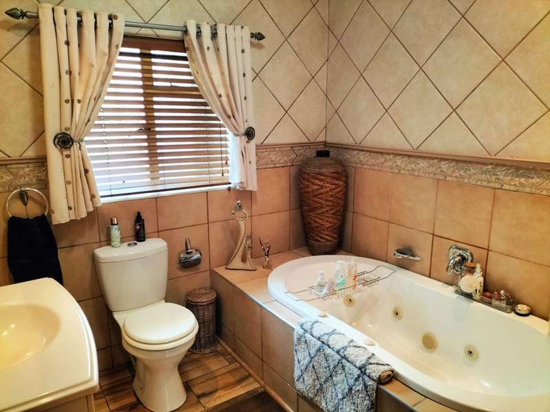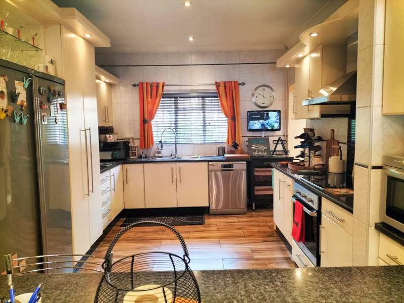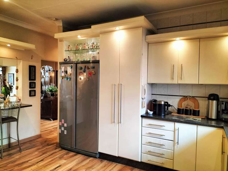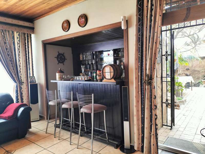 All offers from R 1 800 000 will be negotiated. Asking price is R 1 950 000. Run your home from anywhere with SMART home technology. You won't want to leave the house though - there's too much to enjoy! Located in the boomed section of Solheim, this property offers: * Two off-street entrances with automated gates * Spacious interiors and multiple entertainment spots inside and outside. The floors are wood laminate. The bathrooms are tiled floor to ceiling. * A kitchen with granite tops, loads of cupboards, under-counter spots for two appliances, and space for a double-door fridge. The breakfast bar comes in handy. The walls are also tiled floor to ceiling. * A classy pub in the formal lounge area where doors open out to the patio and back garden * A pool in the back yard, with the braai area close by * An upstairs family room Piqued your interest? Call us today for your private viewing!