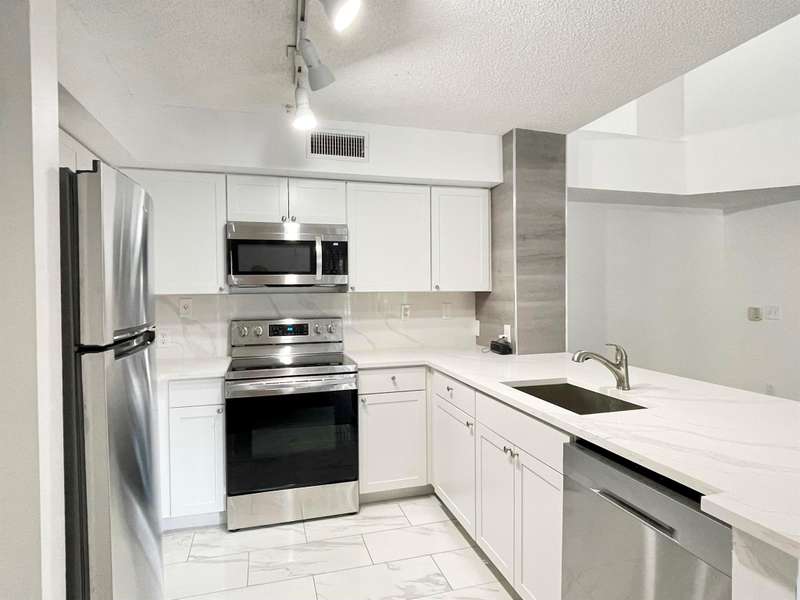 Renovated and spacious 2-bedroom, 2-bathroom condo located on the 2nd floor in the highly desirable gated community of St. Andrews at Boynton Beach. This beautiful unit features a kitchen with white shaker cabinets, stainless-steel appliances, Calacatta quartz countertops and backsplash. Enjoy high vaulted ceilings, vinyl flooring in the living areas, and laminate flooring in the bedrooms. The split floor plan offers privacy, and there's a laundry closet with a full-size washer and dryer. Resort-style amenities include a heated pool, jacuzzi, fitness center, and clubhouse. Ideally located across from Park Vista High School and West Boynton Park & Recreation Center, which offers a playground, basketball & tennis courts, volleyball, and a skate park. A-rated schools!