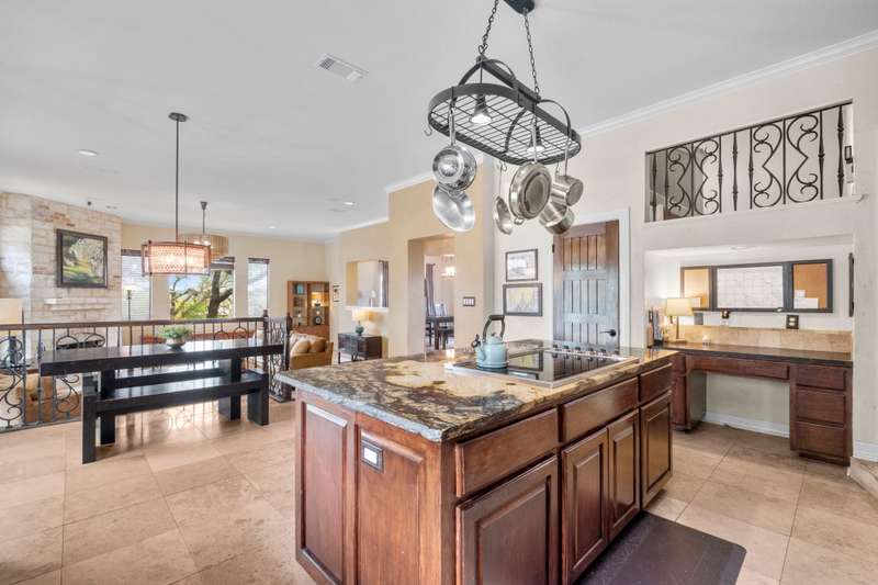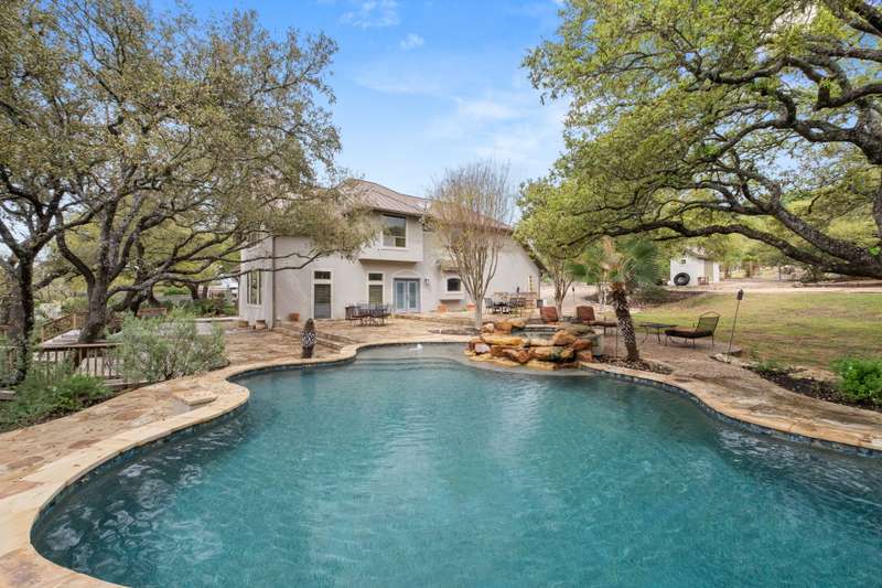 Welcome to 25052 Whistling Wind, a Mediterranean masterpiece nestled in the exclusive Hidden Spring Estates. This gated community gem, crafted by the esteemed Malatek Home Builders, rests on nearly 3 acres of lush, picturesque land, offering breathtaking views of the enchanting Hill Country. As you enter this luxurious estate, you'll find two distinct residences: a grand main house and a charming guest house. The main house, spanning approximately 3,200 square feet, boasts a thoughtfully designed floor plan. The primary suite, located on the first floor, serves as a serene retreat with a sumptuous en-suite bathroom featuring an oversized garden tub and a stand-up shower. The main level also includes an elegant dining room, perfect for cozy dinners, and a spacious island kitchen that flows seamlessly into the inviting living area, ideal for entertaining loved ones. Upstairs, the home offers comfortable and private secondary bedrooms. Step outside to find an expansive wooden deck, creating an intimate setting for special gatherings and memorable moments. Beyond the deck, a generous sparkling pool awaits, heated for year-round enjoyment and relaxation. Additional outdoor amenities include an in-ground trampoline, a dog run, and a tree house. The main house includes an attached 2-car garage. Designed with the famous Ballory Hotel of New York City in mind, the nearly 1,600-square-foot guest house, ensures that visitors feel right at home with every comfort provided. It features a full kitchen and family room, two bedrooms downstairs, and an upstairs loft that can serve as an office, media room, or third bedroom. The walkout balcony on the second level provides extensive views of the surrounding hill country. The guest house also includes an attached 2-car garage. A private utility drive provides convenient access for contractors needing to service the property. 25052 Whistling Wind is a rare sanctuary in San Antonio, offering an exquisite blend of luxury, space, and tranquility amidst the stunning beauty of the Hill Country. Welcome home. - 10/19/2025 3:16:00 AM