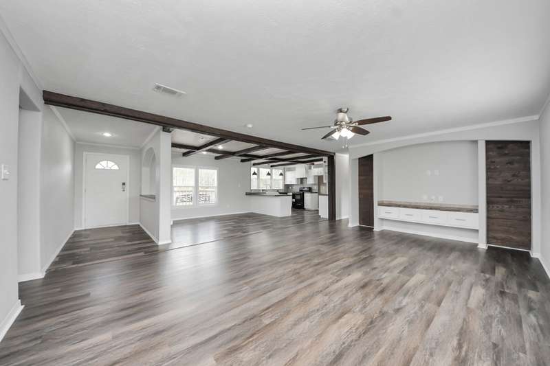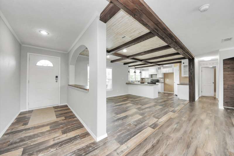 Welcome to this charming farmhouse-style home featuring 4 spacious bedrooms and 2 full baths. This home offers a warm and inviting layout with a formal living area, a bright kitchen with a breakfast bar, and a formal dining area perfect for entertaining family and friends. Enjoy the character of beautiful box beams throughout, generous-sized bedrooms, and a spacious primary suite with an ensuite bath featuring a shower and tub combo plus double sinks. The home also includes a dedicated washer and dryer room and a convenient mudroom area for added functionality. Sitting on a little over half an acre of cleared land, this property offers plenty of space to enjoy peaceful country living with room to grow and make it your own.