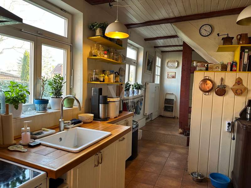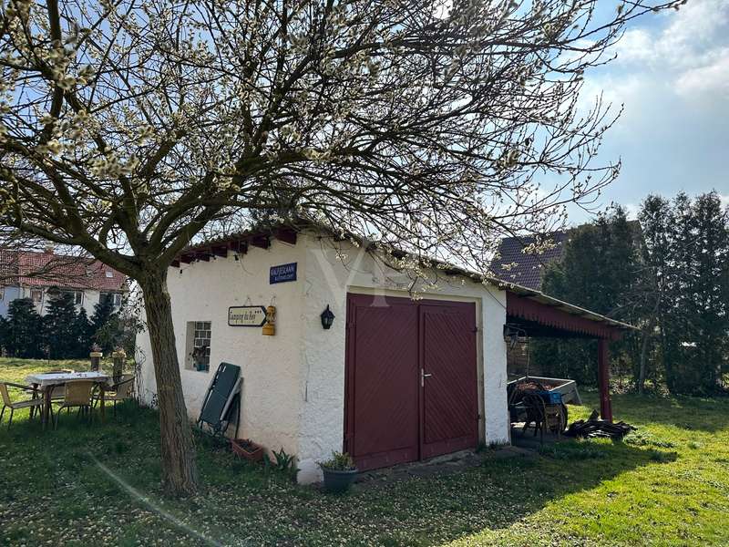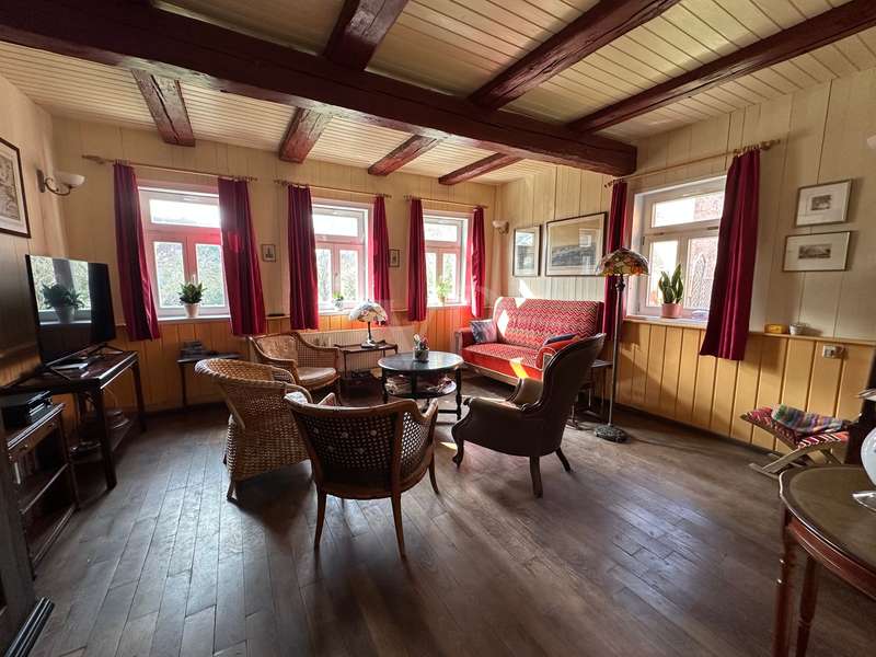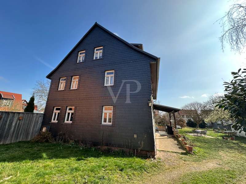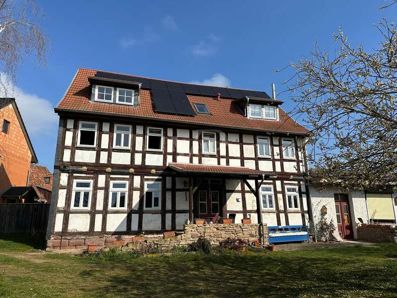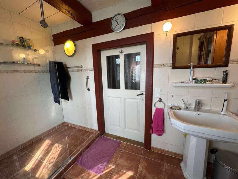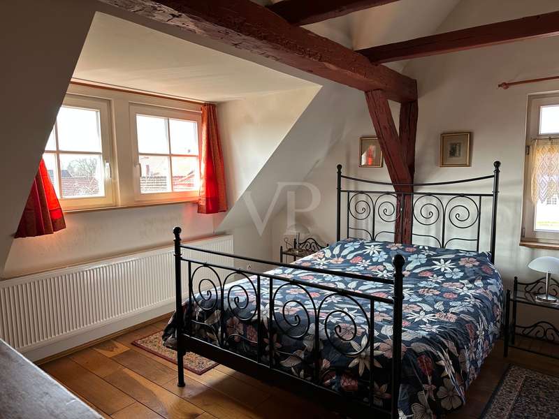 Former vicarage: completely renovated in a new stylish country house flair. This imposing country house - originally built in 1806 with oak timber framing - combines historical charm with modern living quality. On a generous living space of approx. 220 m² plus an extendable annex (built approx. 1979) with approx. 60 m², the property offers 8 rooms in the main house, including two modern bathrooms, which provide plenty of space for wellness and relaxation. The parish garden, the associated plot of land, covers approx. 1746 m² and leaves hardly any wish unfulfilled for nature lovers and family people. The property was extensively renovated between 2006 and 2016. As part of this work, the original vicarage was lovingly restored and transformed into a spacious home in true country house style. Particular attention was paid to refurbishing the original wood paneling in the interior, which was supplemented with new real wood elements. The original study on the first floor was also restored and a further study was added on the upper floor. Modern wooden windows with glazing bars and double glazing were installed in 2006, offering both energy benefits and aesthetic enhancements. In the same year, the roof was re-roofed and fitted with thermal insulation to meet today's standards. Another important aspect of the renovations was the construction of a modern bathroom in 2010 as well as the refurbishment and partial renewal of the floors with real beech and oak wood. The west façade of the house, including the gable, was completely re-insulated in 2015 and fitted with slate roofing. Innovative technologies were also incorporated into the property. For example, a PV system was installed in 2021, further increasing the energy efficiency of the house. In 2023, the heating system was converted to a modern wood pellet heating system. This environmentally friendly solution complements the sustainable quality standards of the furnishings. The south-facing historic half-timbered façade needs work in the medium term. The country house is a listed building, which underlines the historical value of the building. This unique property cleverly combines the values of bygone times with modern living comfort. Potential buyers can look forward to a property in mint condition that combines the charm of a lovingly restored historic building with state-of-the-art technical equipment. The property on offer is ideal for families or individuals looking for a stylish home with a historical background. The entire ground floor with extension is also suitable for senior living, as the main access to the house is already equipped with a wheelchair-accessible ramp plus a covered entrance area. Despite the age of the house, it is largely in mint condition and is waiting to be filled with new life.