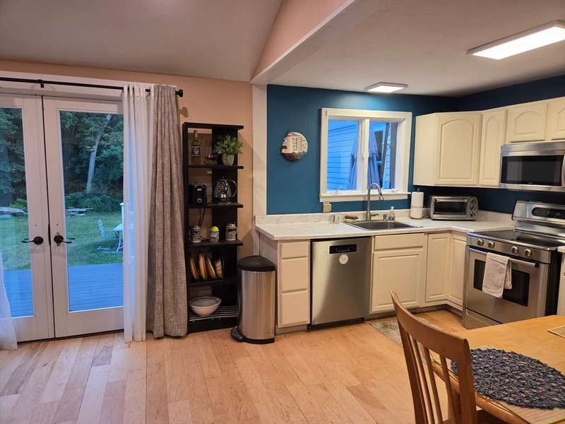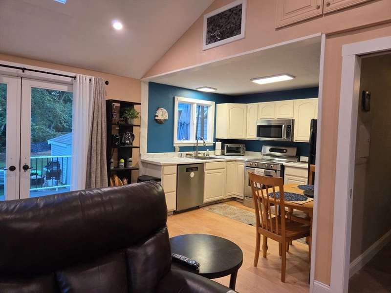 Rare furnished short-term rental opportunity features a charming 1 bed, 1 bath layout complete with a washer/dryer, inviting dining areas or a convenient work space, living room with vaulted ceilings and a beautifully updated kitchen. Enjoy the ease of a sliding door that opens up to your own private deck and yard, perfect for relaxation and outdoor fun. Plus, utilities are included for your convenience!