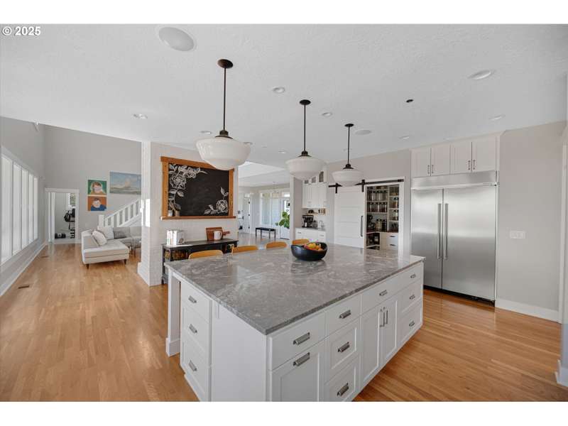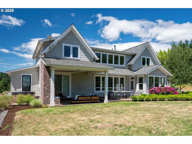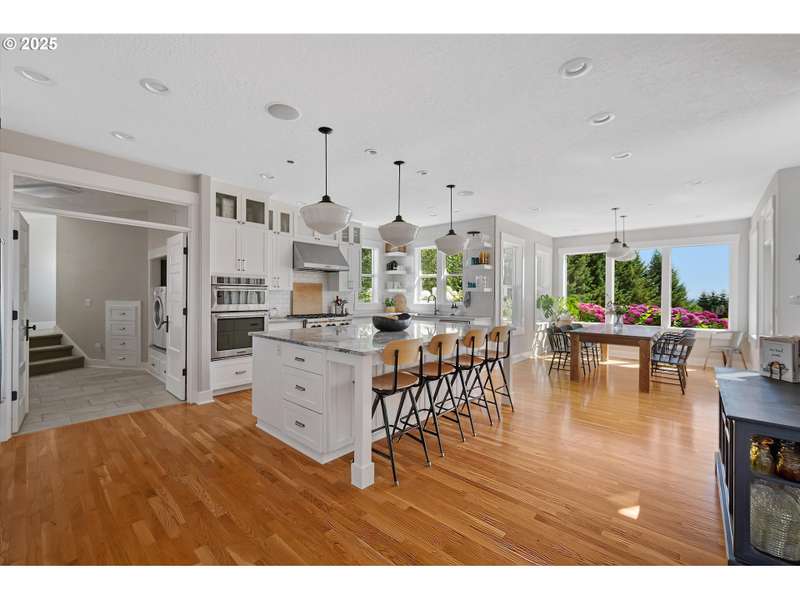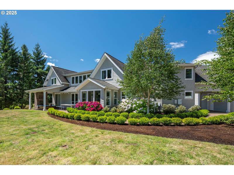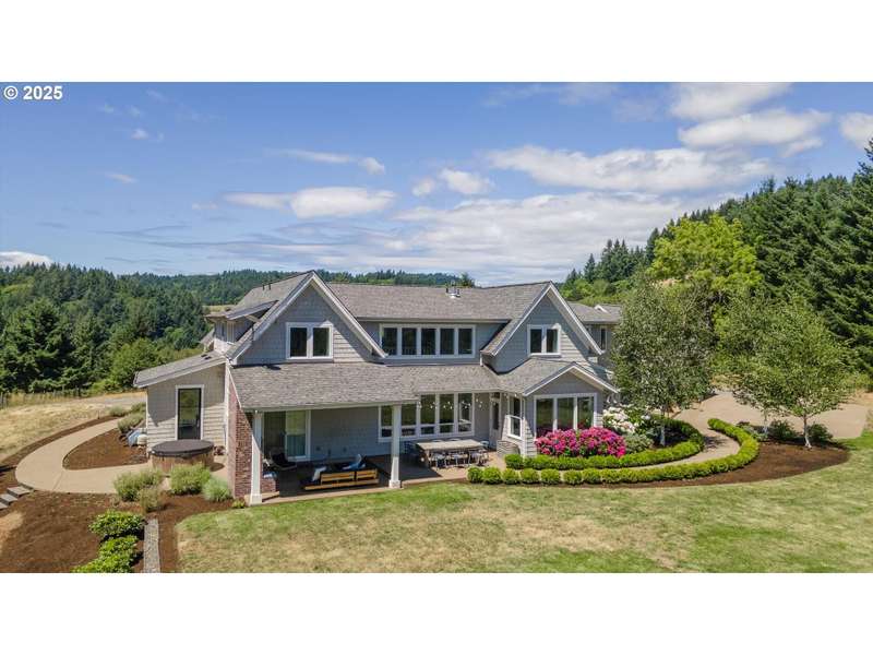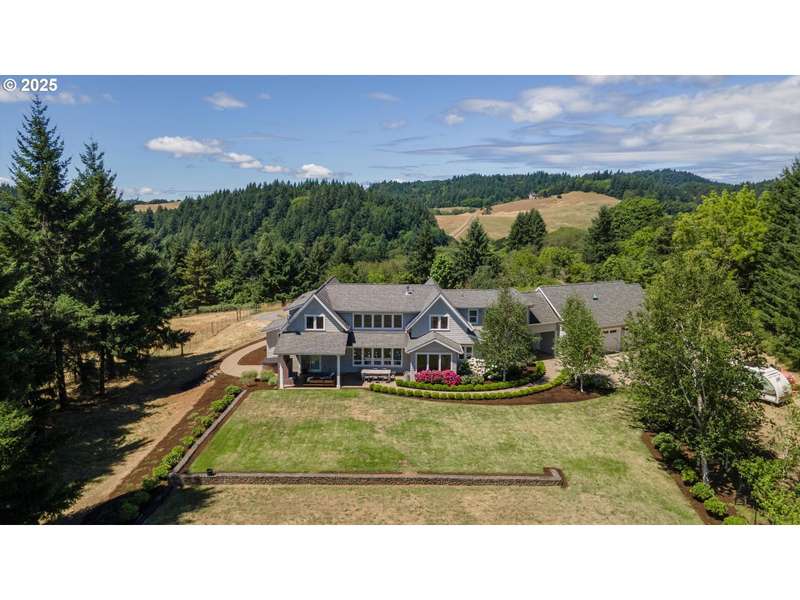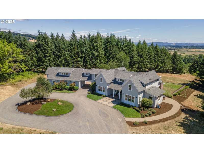 This stunning custom estate is perched atop a serene 9.4-acre parcel with breathtaking views! This grand home offers a stately yet inviting feeling with unparalleled privacy — and is conveniently located just minutes from town. Designed with both elegance and function in mind, this home boasts soaring ceilings, an abundance of natural light, and beautiful hardwood floors throughout.The spacious floor plan features 4 bedrooms, including a luxurious primary suite on the main floor, an office, an exercise room and exceptional entertaining spaces. The gourmet kitchen is a chef’s dream with a massive island, walk-in pantry, and a wet bar area—ideal for hosting gatherings large or small.Above the garage, you will find a finished bonus space- perfect for multi-generational living, a caretaker, or guest quarters. The square footage of this space is not included in the home square footage. Upscale finishes, a thoughtful layout, along with a setting that offers both privacy and convenience make this property an extraordinary place to call home.