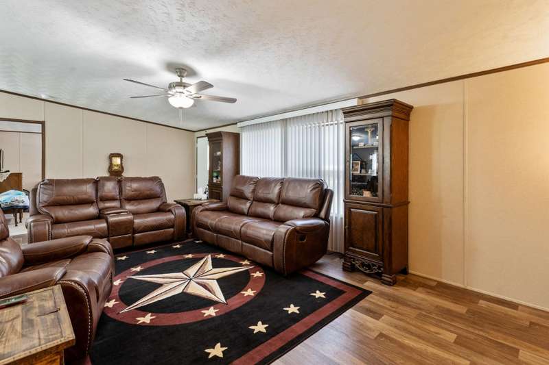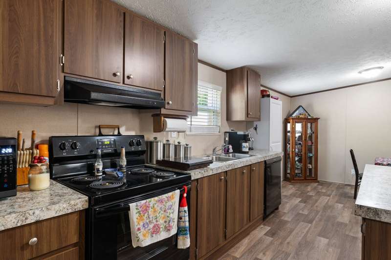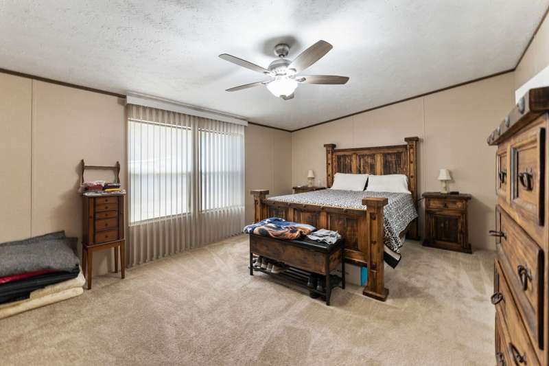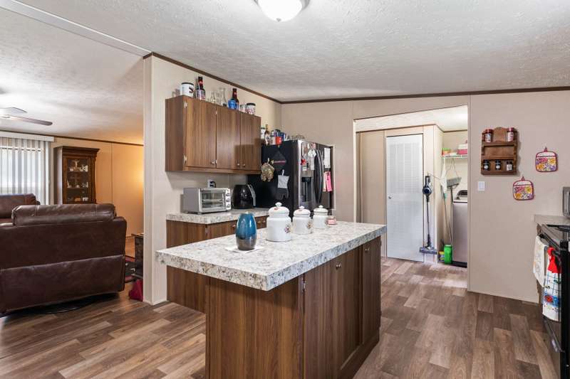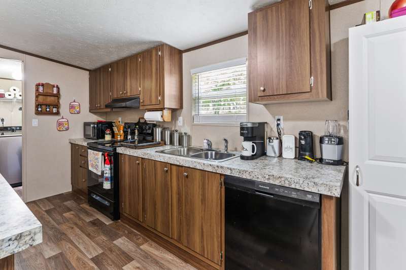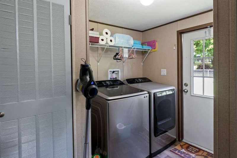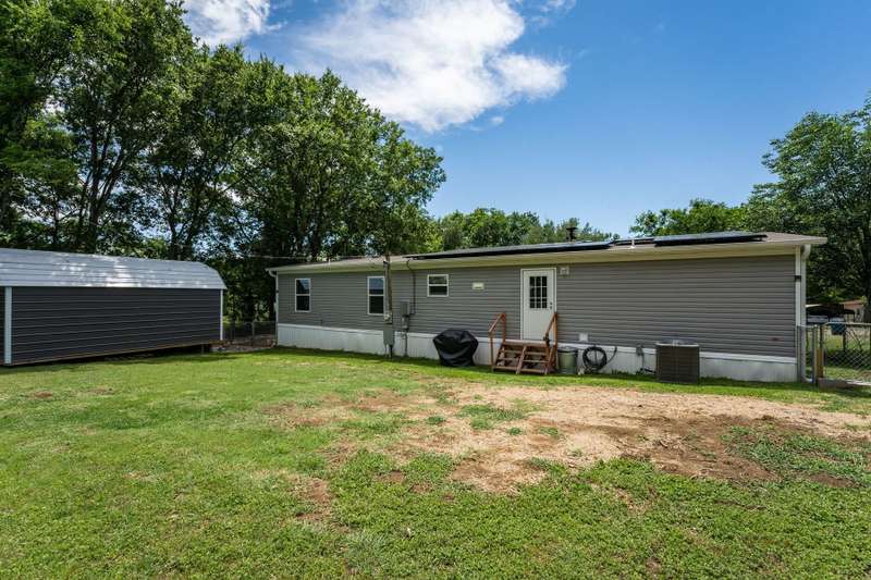 Quaint 3-2 in the highly sought after Tamarack community! This home comes equipped with a chain-link fence surrounding the back yard, making it the perfect space for those fur babies to run and play! The full circle driveway with additional parking on the side of the house gives more than enough space for all those outdoor vehicles to be safely parked. Large storage building located on-site that is already powered with multiple electrical plugs and lighting. 26 state of the art solar panels on the roof, open floorplan as well as a primary bed with an ensuite bath and spacious walk in closets. Beautiful kitchen with laminate style countertops, appliances, easy care vinyl flooring and an amazing food prep area! HOA includes a swimming pool, fishing pier, playground and boat ramp.