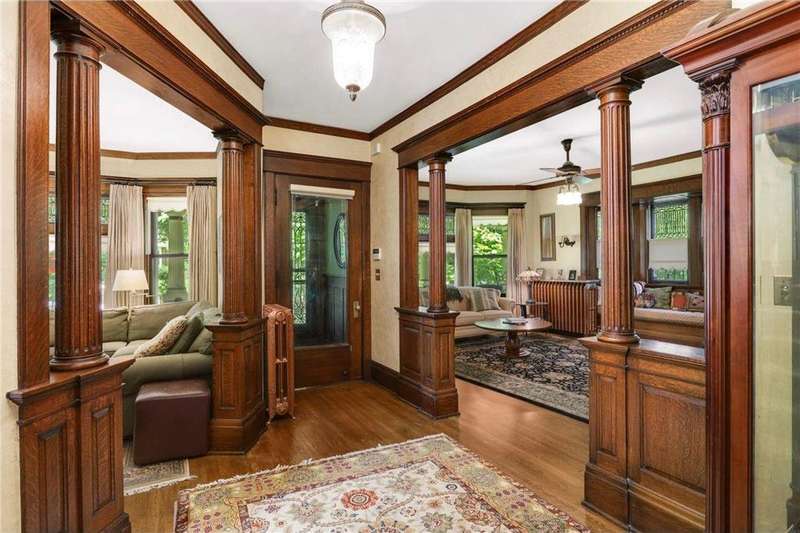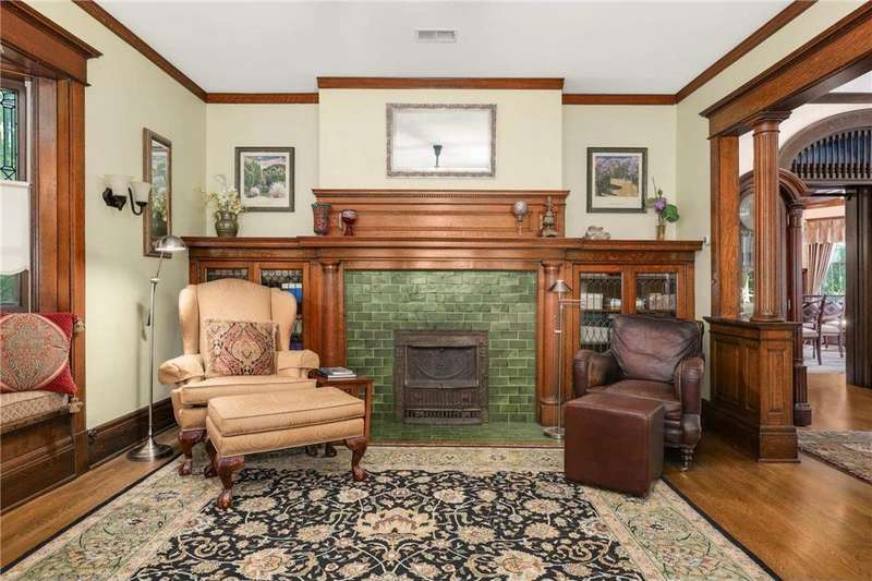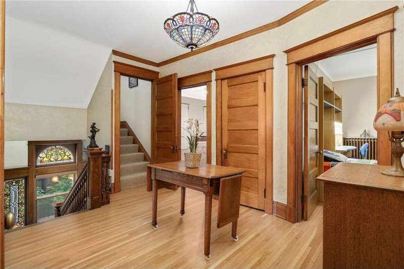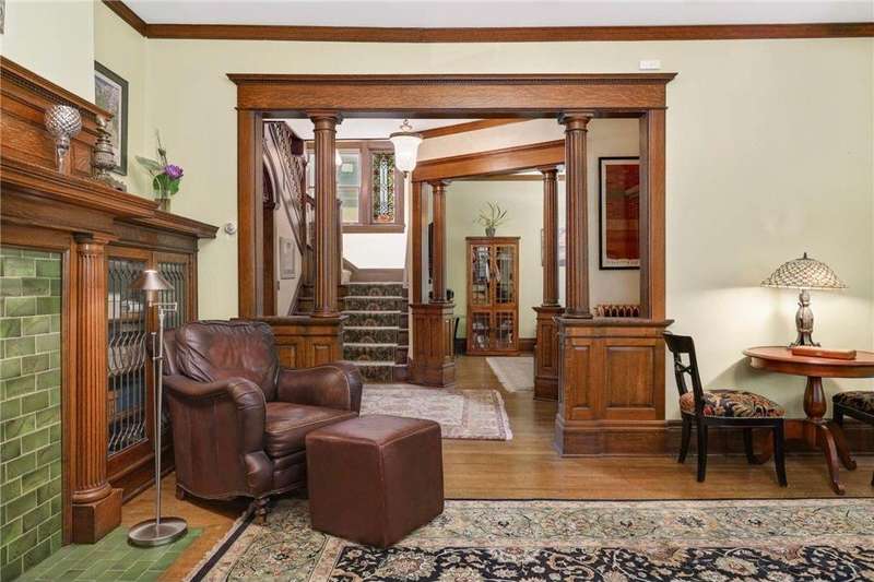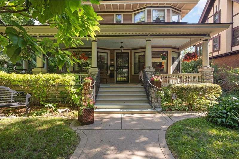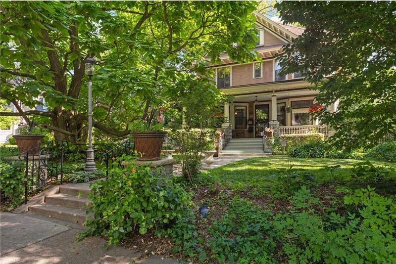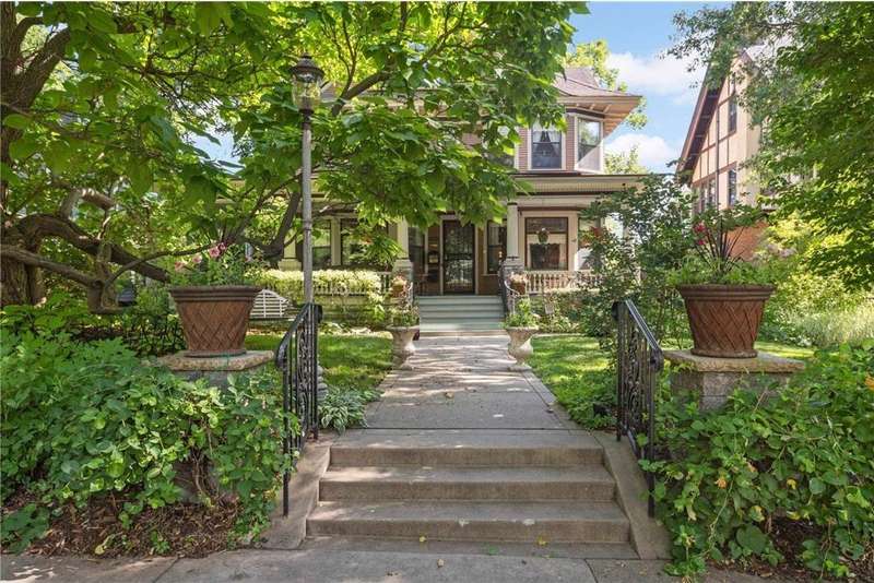 PRICED $100K UNDER THE TAX ASSESSED VALUE. Beautifully designed by renowned architect Peter Linhoff in 1908 for the Allen B. (A.B.) Van Bergen family. His work was known for an elegant, formal yet cozy feel. The home has been meticulously preserved as the Van Bergen family resided there almost 50 years. Located in the heart of Summit Hill, this remarkable home is a showcase of exquisite original details and thoughtful modern updates. Step inside to a gracious foyer adorned with breathtaking natural woodwork, curved ceiling accents with spindle detailing, and a grand staircase featuring a working light fixture and figurines on the newel posts—truly a work of art. The formal living and dining rooms are loaded with leaded glass windows and stunning original built-ins. The main floor parlor has been transformed into a cozy family room, while the updated kitchen features custom cabinetry and an expansive walk-through pantry, and convenient back stairs. A main floor powder room and a convenient mudroom with in-floor heat add to the home's livability. Upstairs, the second level boasts a spacious landing, four generously sized bedrooms, and an updated bathroom with dual vanities and custom storage. The third floor offers even more flexible living space with a bonus space, two additional bedrooms, and a three-quarter bath—ideal for guests, working from home, or creative space. Comfort abounds with high-velocity air conditioning throughout, to add this modern convenience without distraction from the original beauty of the home. The lower level includes a rare bonus: high ceilings and a newly added three-quarter bath, ready for finishing into even more living space. Outside, enjoy relaxing on the inviting wrap-around front porch or entertaining in the private, fully fenced backyard with multiple decks. A truly rare find in this neighborhood—a four-car garage completes the package. The home is situated on an oversized 60 foot wide lot, so there is still plenty of yard space to enjoy. All of this located just steps from all the shops, dining, coffee spots, and fitness options along Grand Avenue, schools, and parks! Don't miss this opportunity to own a piece of Summit Hill history with all the comforts of modern living!