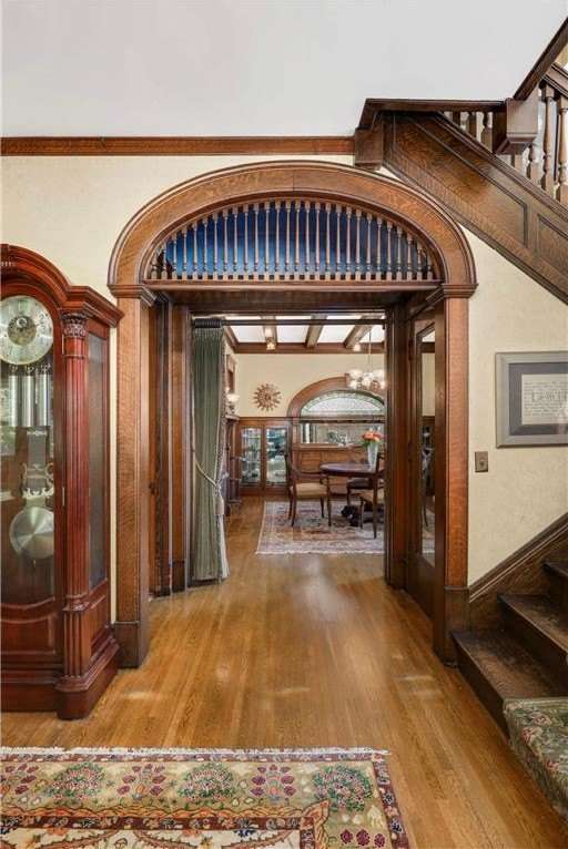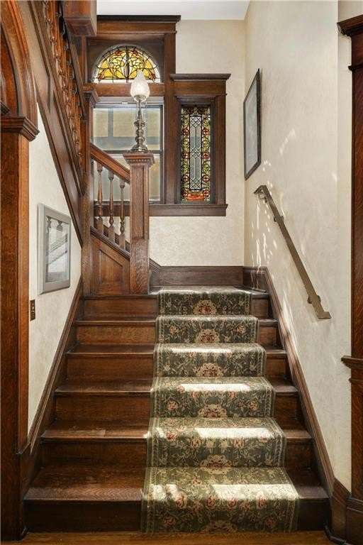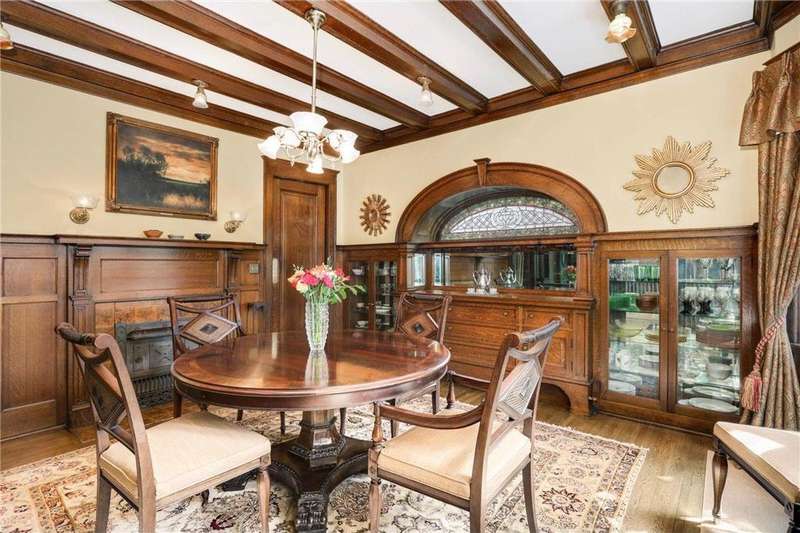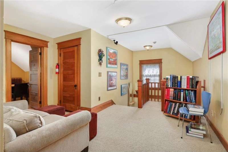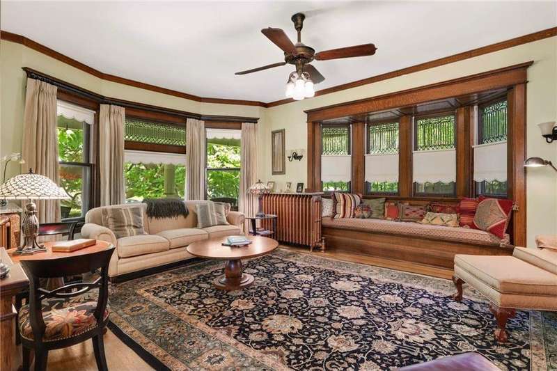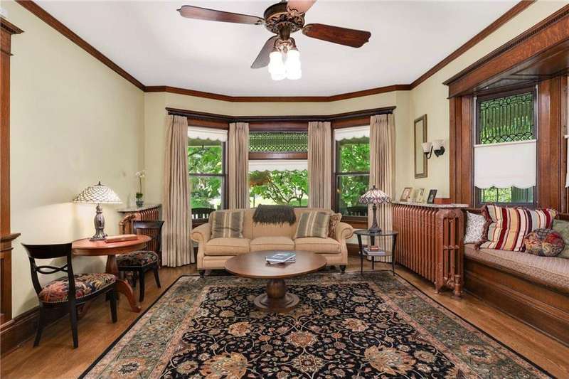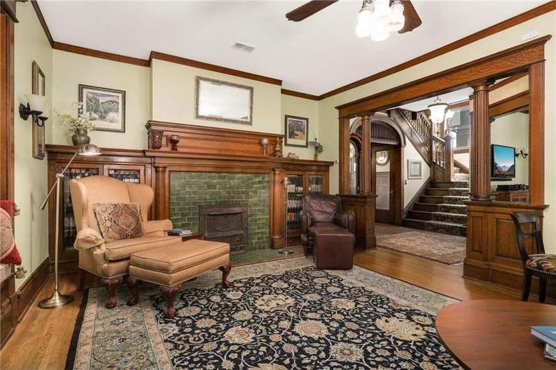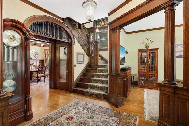 PRICED $100K UNDER THE TAX ASSESSED VALUE. Beautifully designed by renowned architect Peter Linhoff in 1908 for the Allen B. (A.B.) Van Bergen family. His work was known for an elegant, formal yet cozy feel. The home has been meticulously preserved as the Van Bergen family resided there almost 50 years. Located in the heart of Summit Hill, this remarkable home is a showcase of exquisite original details and thoughtful modern updates. Step inside to a gracious foyer adorned with breathtaking natural woodwork, curved ceiling accents with spindle detailing, and a grand staircase featuring a working light fixture and figurines on the newel posts—truly a work of art. The formal living and dining rooms are loaded with leaded glass windows and stunning original built-ins. The main floor parlor has been transformed into a cozy family room, while the updated kitchen features custom cabinetry and an expansive walk-through pantry, and convenient back stairs. A main floor powder room and a convenient mudroom with in-floor heat add to the home's livability. Upstairs, the second level boasts a spacious landing, four generously sized bedrooms, and an updated bathroom with dual vanities and custom storage. The third floor offers even more flexible living space with a bonus space, two additional bedrooms, and a three-quarter bath—ideal for guests, working from home, or creative space. Comfort abounds with high-velocity air conditioning throughout, to add this modern convenience without distraction from the original beauty of the home. The lower level includes a rare bonus: high ceilings and a newly added three-quarter bath, ready for finishing into even more living space. Outside, enjoy relaxing on the inviting wrap-around front porch or entertaining in the private, fully fenced backyard with multiple decks. A truly rare find in this neighborhood—a four-car garage completes the package. The home is situated on an oversized 60 foot wide lot, so there is still plenty of yard space to enjoy. All of this located just steps from all the shops, dining, coffee spots, and fitness options along Grand Avenue, schools, and parks! Don't miss this opportunity to own a piece of Summit Hill history with all the comforts of modern living!