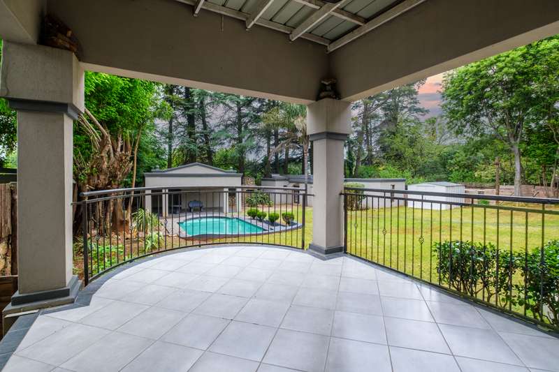 Asking R3 649 000 Large Family Home with Great Entertainment! Secluded hide away double storey home on 2016sqm stand is now looking for a new owner. Open plan lounge with fireplace & dining room open onto spacious patio & recreation room. Well fitted kitchen with ample cupboard space, free standing gas stove & separate scullery. From here the passage flows to a further large family entertainment room that opens onto open & covered patios that overlooks the tranquil garden & sparkling pool. And for easy entertainment there is a poolside covered patio. On this level, the bedroom wing consists of 3 bedrooms & 2 bathrooms (1x En-suite) & a guest loo. To cater for guests or extended family this home offers a 1-bedroom flatlet with: Lounge, En-suite bedroom & kitchenette. The interleading room (fitted with top to bottom shelves) & staircase leads to the upper level that consist of: Spacious master bedroom that opens onto balcony, luxury bathroom & dressing room. Furthermore, there is another bedroom, bathroom plus a study. Outbuildings: Double automated garages, covered carport for 2 vehicles; laundry facility & last but nor least: Luxury staff accommodation/cottage that offers, open plan lounge & kitchen, good sized bedroom with built-in cupboards & bathroom. Excellent location, easy access to all major routes & schools plus with-in walking distance to places of worship. Come See & Fall in Love!