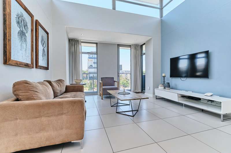 Measuring 87 square metres in extent and situated on the 8th floor of the Apex on Smuts The unit is light, bright and warm with views over the leafy suburbs of Johannesburg An open plan lounge, dining room and kitchen tiled throughout The kitchen is modern with stone tops, integrated gas hob and electric oven, space for two appliances and a microwave. There is an open balcony with serene suburban views The two bedrooms are en suite to their own bathrooms, The floors are wood look and there are built in cupboards in both bedrooms Both bathrooms are modern with neutral finishes The unit is perfect for either short or long term rental and there is an onsite rental manager in the complex The hob is connected to the buildings gas supply A generator makes load shedding easy to manage 2 garage parkings and a store room complete the apartment Situated close to all the amenities that Rosebank offers, such as being a business hub and a centre for restaurants, galleries and shopping malls Easy Gautrain access R5264 + utilities ( levy), Rates R1974 approximately
