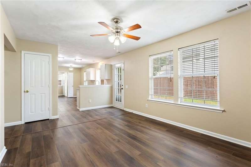 Welcome home to this beautifully updated home located in the sought-after Kellam School District. Thoughtfully refreshed throughout, it offers a warm and welcoming layout. The main level features brand new flooring (2025), an updated kitchen (2025) with granite countertops, and an open design that flows easily into the inviting living room. A separate dining area and additional den provide flexible spaces for work, play, or entertaining. Upstairs, you'll find three spacious bedrooms and a full bathroom, including a large primary suite with an ensuite bath, walk-in closet, soaking tub, and separate shower. The attached one-car garage includes a versatile flex room great for a home office or playroom. Outside, enjoy a nicely sized yard with a paved patio great for relaxing or hosting gatherings. Centrally located near shopping, dining, and beaches, this beauty offers comfort, convenience, and lasting value in a vibrant, close-knit Virginia Beach community you'll be proud to call home.