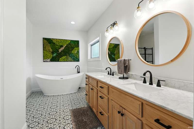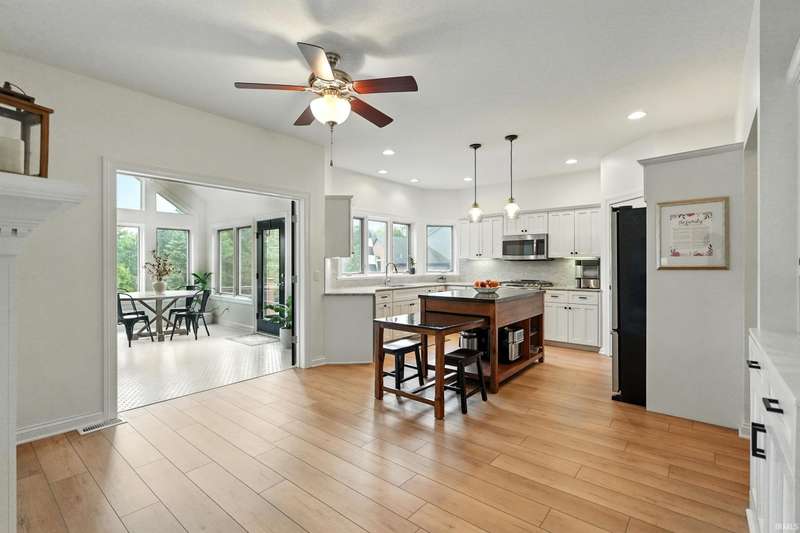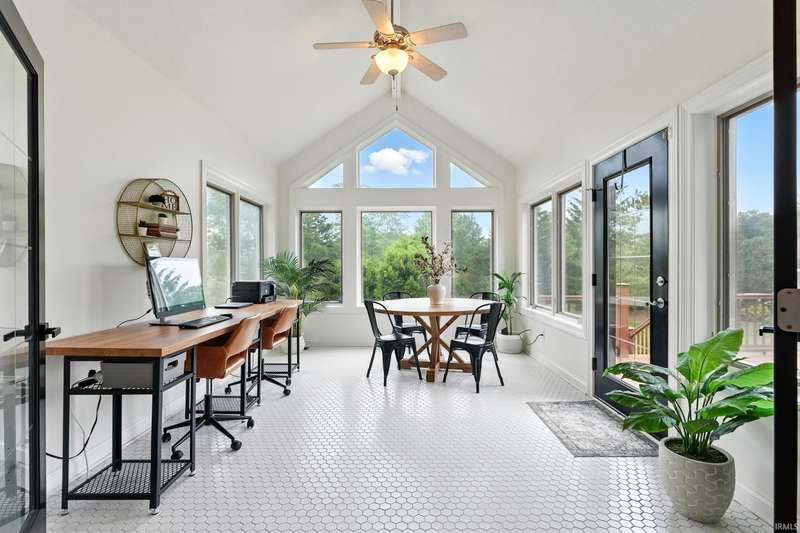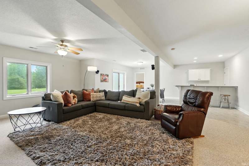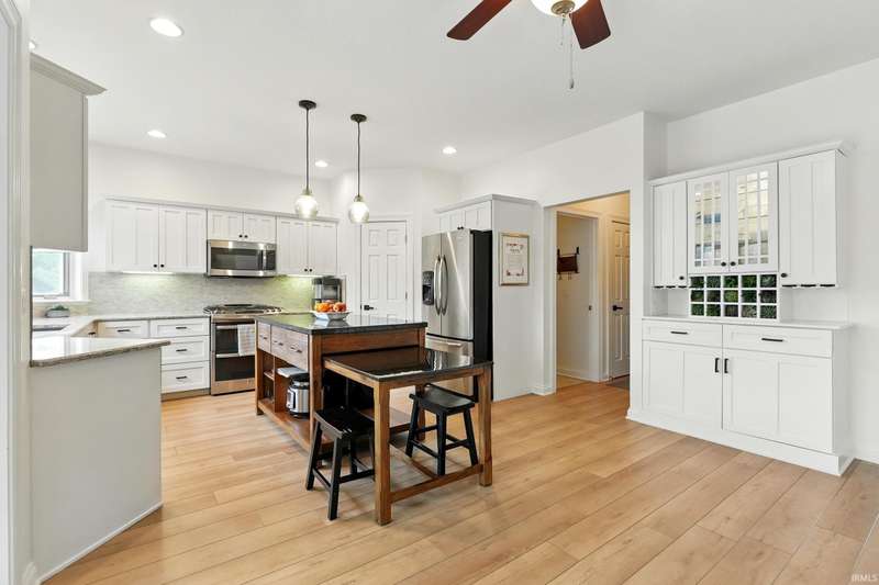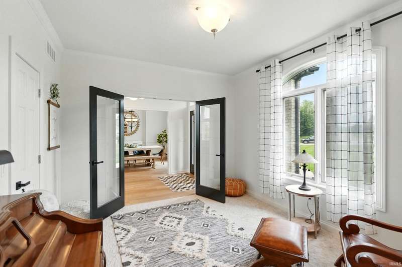 VIBRANT, FRESH...Just a couple of words to describe this amazing home on over an acre lot in the desirable Covington Manor Farms neighborhood. You will see brand new flooring throughout the main level with fresh paint. Both the office and living room are adorned with exquisite built-ins. The double-sided fireplace shares space with the fully updated kitchen finished with granite countertops and a custom island. The kitchen is the heart of the home, with plenty of room to gather with the adjacent newly tiled brilliant four-season room off the kitchen. The main floor primary en suite is updated with new flooring, free-standing tub, double vanity, and walk-in shower. Entertaining is a breeze in the expansive walk-out basement complete with bar, guest bedroom and full bath. Enjoy those Indiana summer evenings in the picturesque backyard. The patio space is complete with fire pit. This home awaits its new owners!