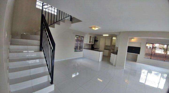 Nestled within the sought-after 24-hour security complex of Villa Ilanga, this stunning double-storey home embodies comfort, style, and modern living. Boasting four spacious bedrooms and three beautifully appointed bathrooms, including a luxurious en suite, this property provides ample space for a growing family or those who love to entertain. A thoughtfully designed guest toilet adds to the convenience. The home features an open-plan layout that seamlessly connects the study, lounge, dining room, and TV room, creating an inviting atmosphere for both relaxation and social gatherings. The entertainment area, complete with a built-in braai, is perfect for hosting guests or enjoying family barbecues. The well-designed kitchen, equipped with a scullery, offers both functionality and style, ensuring that culinary adventures are a delight. Practical features abound, with built-in cupboards and elegant tiled flooring throughout the home, while a walk-in linen closet adds extra storage convenience. The property includes a double garage, prepaid electricity meter, and a JoJo tank with a pressure pump to ensure a reliable water supply. The home is pet-friendly, allowing your furry companions to enjoy the private outdoor space. Located within close proximity to schools and shopping centers, this property is not only a haven of modern living but also ideally positioned for everyday convenience. Whether you are enjoying the peace of mind provided by the secure complex or reveling in the spacious and well-appointed interiors, this beautiful home promises a lifestyle of comfort and sophistication.
