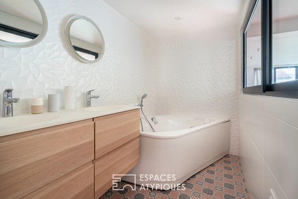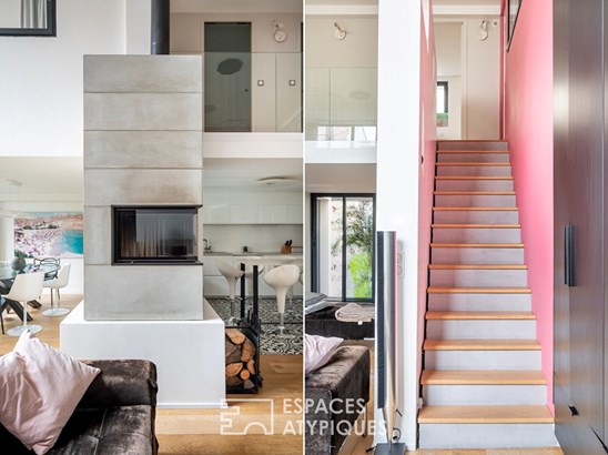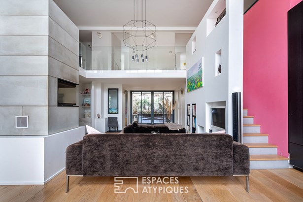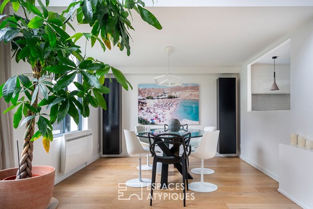 Built in 2016 from the renovation of a former printing house, this 176 m2 contemporary loft skillfully combines industrial character with modern comfort.