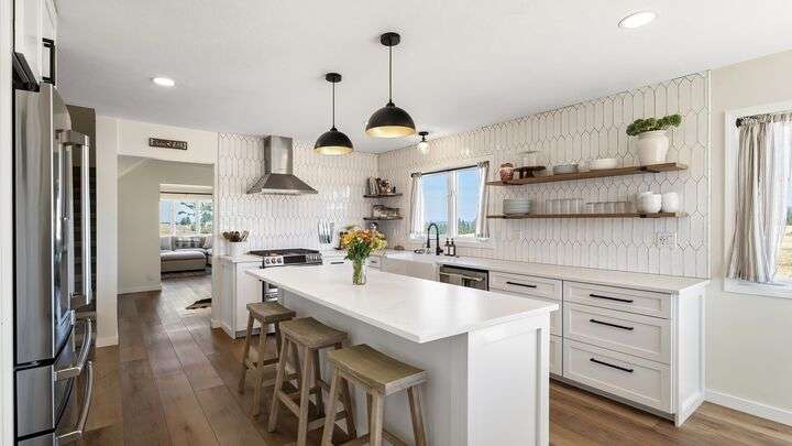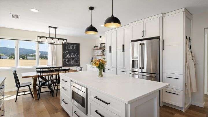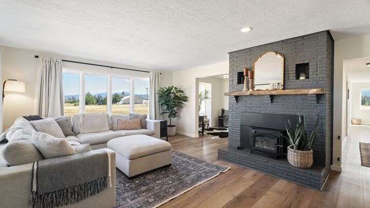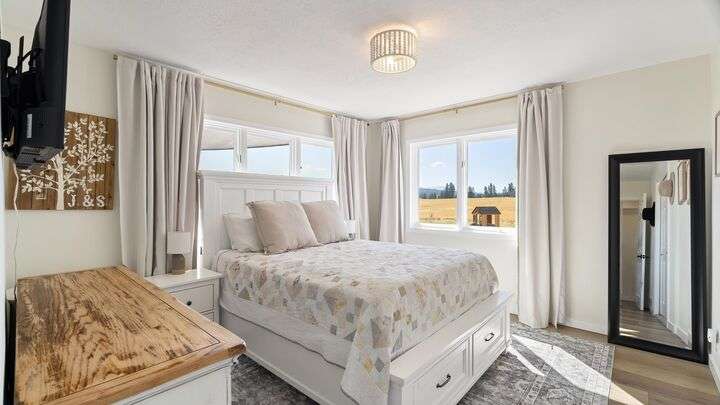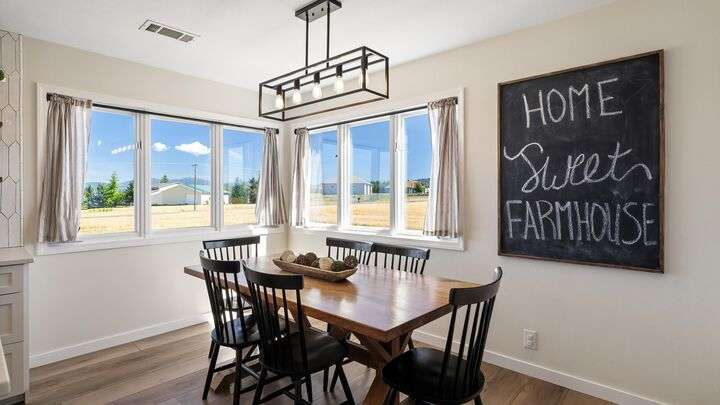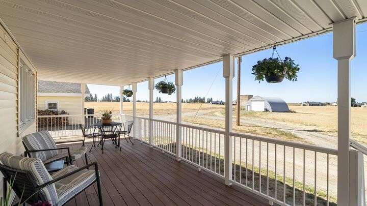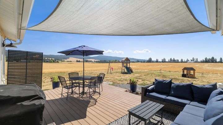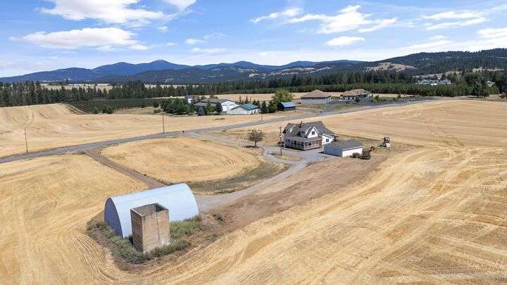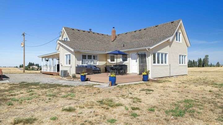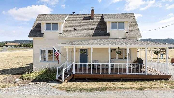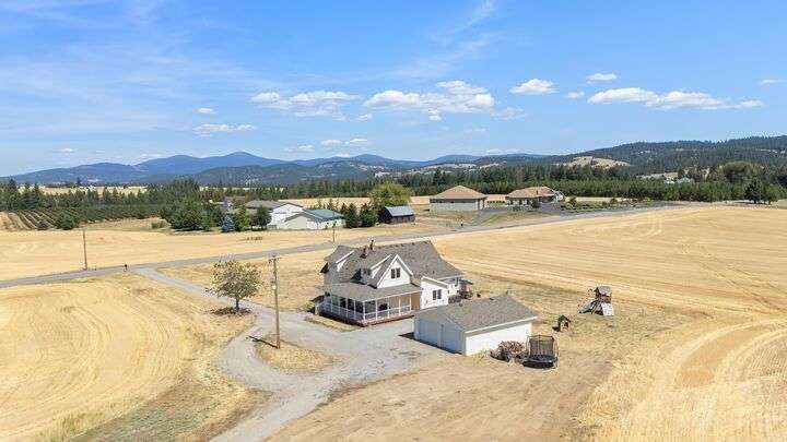 Charming farmhouse with breathtaking views, originally built in 1898 and fully updated in last few years throughout! This home offers 2,500 square feet of living space featuring 4 bedrooms and 2 ½ baths with main floor laundry. The kitchen has been completely renovated, boasting quartz countertops, new cabinets, and updated appliances and fixtures. Both bathrooms on the main floor are newly remodeled with quality finishes. Enjoy stunning views in every direction, showcasing Mt Spokane plus the beautiful surrounding foothills. The country-style wraparound porch is perfect for watching evening sunsets and seeing the abundant wildlife in the area. The living area features a new wood-burning fireplace, and the home is equipped with a forced-air electric heat furnace, as we central air conditioning. New flooring, interior paint throughout and all the rooms and closets are spacious~ the property includes a 30' x 40' machine shop with 20' ceiling height, perfect for toys or RV Storage, plus a detached 2 car garage!