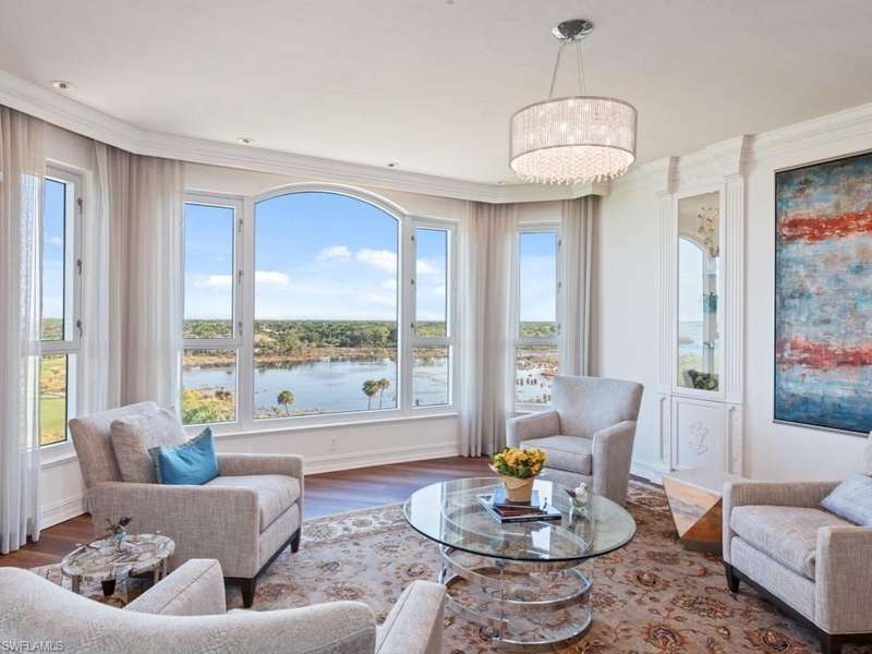 Rising high above Estero Bay, this 7th floor sky home at Bayview offers an extraordinary fusion of luxury, privacy, and breathtaking beauty. As an end-unit with wrap-around lanais, it captures a 270-degree panorama spanning the Estero Bay, Gulf of Mexico, Bay Island Golf Course, and the “Salad Bowl” Bird Sanctuary, inviting you to enjoy both sunrise and sunset views. Designed to live like a single-family home without the upkeep, all 3,808 square feet of living space has been meticulously maintained and thoughtfully updated. Entertain effortlessly with an expansive great room layout, multi-zone adjustable lighting, and a wired speaker system. The primary suite is a true retreat, highlighted by a one-of-a-kind 230 sq. ft. custom walk-in closet designed with cabinetry for both clothing and jewelry. Each guest suite offers its own ensuite bath, ensuring ease for family and friends. The home is equipped with two new A/C units (2024 & 2025), a new water heater, and electric hurricane shutters throughout. The custom bar closet and pantry make hosting a breeze. An oversized 2.5-car private enclosed garage offers private parking rarely found in condominium living. Bayview boasts a recently renovated pool, fitness room with updated equipment, and a 2nd-floor social room complete with a full kitchen and generator for peace of mind. Set in one of Bonita Bay’s most sought-after locations, this residence sits furthest from any neighboring building along the coastline, offering unmatched privacy. As a Bonita Bay resident, you'll enjoy exclusive access to a private beach park, the popular Backwater Jack's Restaurant, a boat launch, and bocce, pickleball and tennis courts. For golf enthusiasts, there’s an opportunity to join the Country Club, which boasts five championship golf courses, a sports/racquet center, resort-style pool, and a state-of-the-art fitness facility, along with a luxury spa and salon. Don't miss your chance to embrace the unparalleled Bonita Bay lifestyle!