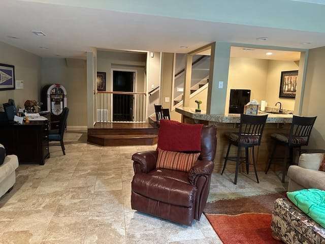 This is a Must See house in Essex Place! Beautiful open floorpan on a wonderful treed lot with hardwoods throughout the entire main level. Main level laundry. Primary bedroom includes a remodeled walk in tile shower, tub and oversized walk in Primary closet. Newer roof (2 years) and Newer HVAC (2 years) !! The full finished basement in this house includes a full size wet bar with granite countertop and tile floor. Lower level walk out bedroom, 3/4 bath including a large walk in shower, and living area that also includes an electric fireplace. Walk out lower level to Oversized patio and gas grill area, ideal for entertaining.