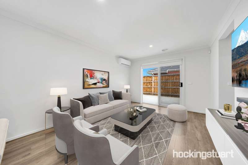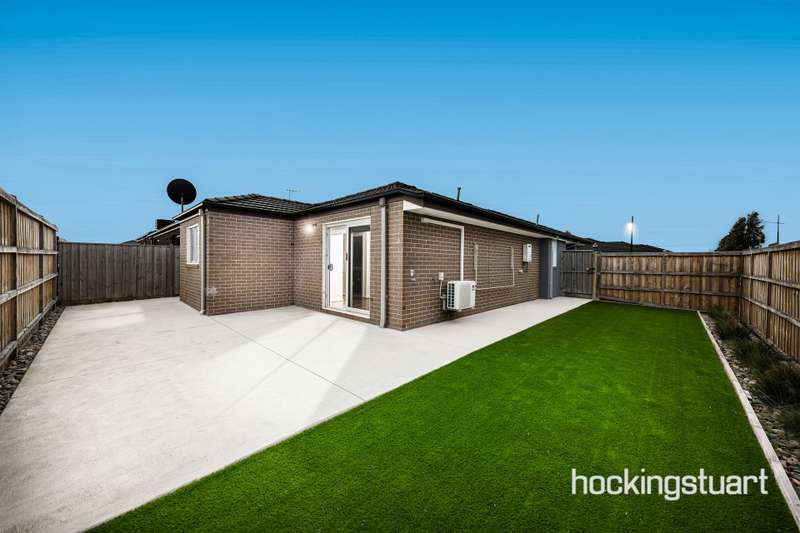 Located in the sought-after Kinbrook Estate in Donnybrook, this modern 3-bedroom, 2-bathroom home with a single garage on a good sized corner block offers a perfect blend of comfort, style, and convenience at an affordable price! Property Highlights: Generous Bedrooms: All three bedrooms are spacious, with the master suite featuring a walk-in wardrobe and ensuite. Open Plan Living: The seamless open-plan design integrates the living, dining, and kitchen areas, creating a welcoming space for family gatherings and entertaining. Additional Features include ducted gas heating, instant hot water, split electric heating/cooling, floating entertainment and dishwasher. This residence is less than 5 years old, ensuring contemporary design and minimal maintenance. Other features include: Alarm system and security doors, ample outdoor space with landscaped backyard including a lovely garden bed & high fences. With its prime location close to local amenities and situated in a quiet family-oriented estate, this home is just 3 minutes drive to the Hume Freeway and has easy access to the city or north towards Sydney, Donnybrook Railway Station only 1.2km away Apply Now