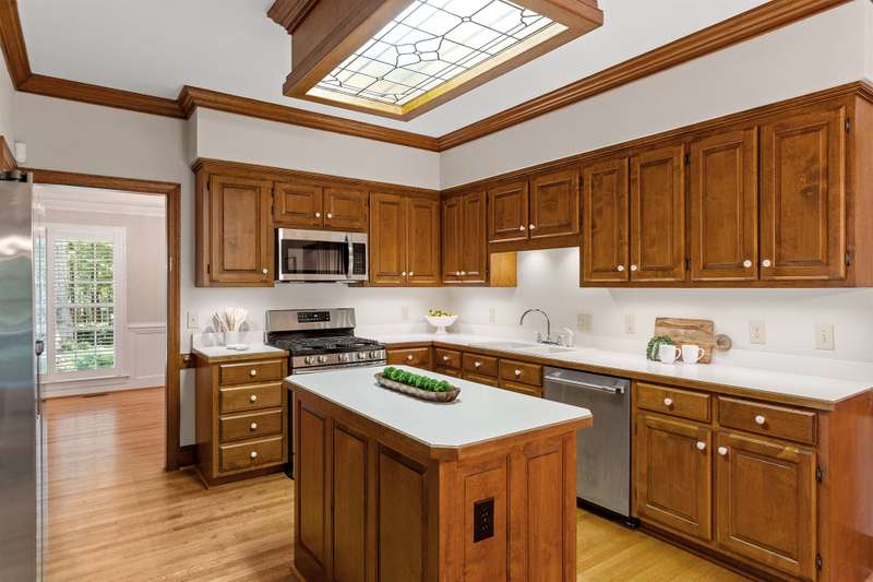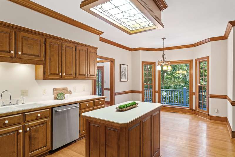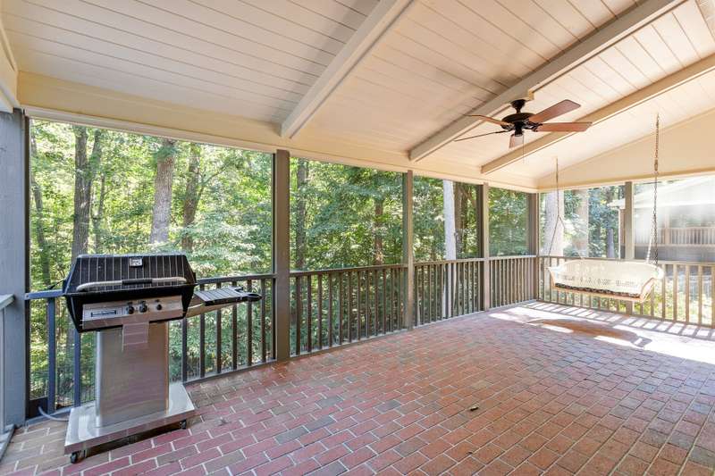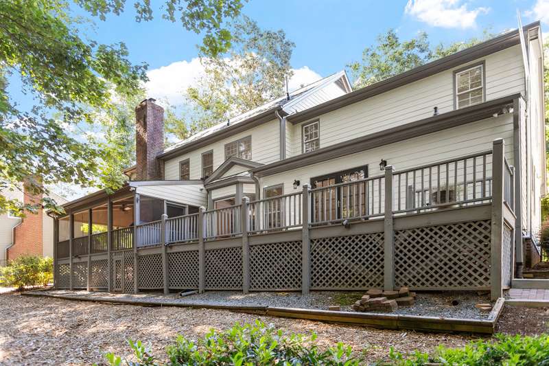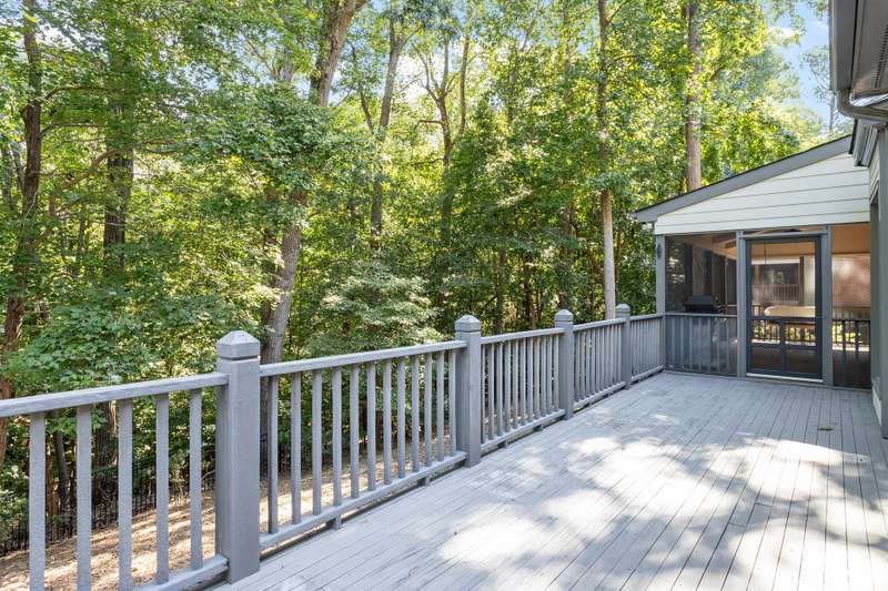 This 4-bedroom, 3-bath North Raleigh home blends timeless charm with fresh updates and versatile spaces. Beautiful wood trim, new paint throughout, and gleaming hardwood floors set the tone, while new carpet adds comfort upstairs. Two bonus/flex rooms with built-in shelving provide flexibility?one on the finished third floor highlighted by a unique stained-glass window. The kitchen features stainless steel appliances, including a brand-new microwave, and all appliances convey. For peace of mind, the home was pre-inspected with a full list of completed repairs and receipts available in the MLS documents. Updates include electrical and plumbing repairs, new ductwork in the crawl space, and a fully sealed crawl space. A Generac generator plus brick and Hardiplank-style exterior add to the home's durability and reliability. Outdoor living is just as inviting with a screened porch (swing and grill convey, with gas stub-out) plus a large deck overlooking a fenced and landscaped yard. The property is uniquely positioned between two HOA-owned parcels of land, offering wooded views in back and a quiet, open setting in front. This North Raleigh home offers warmth, character, and confidence in its updates?ready for its next chapter. The neighborhood amenities include pool, playground, tennis, and pickleball.