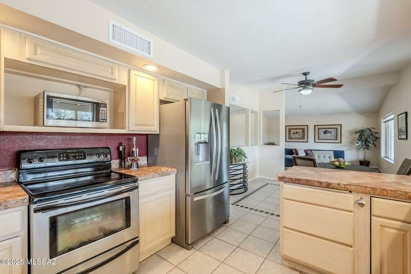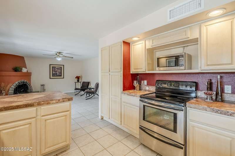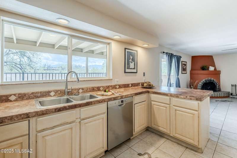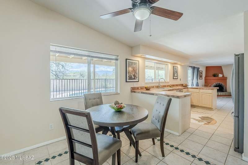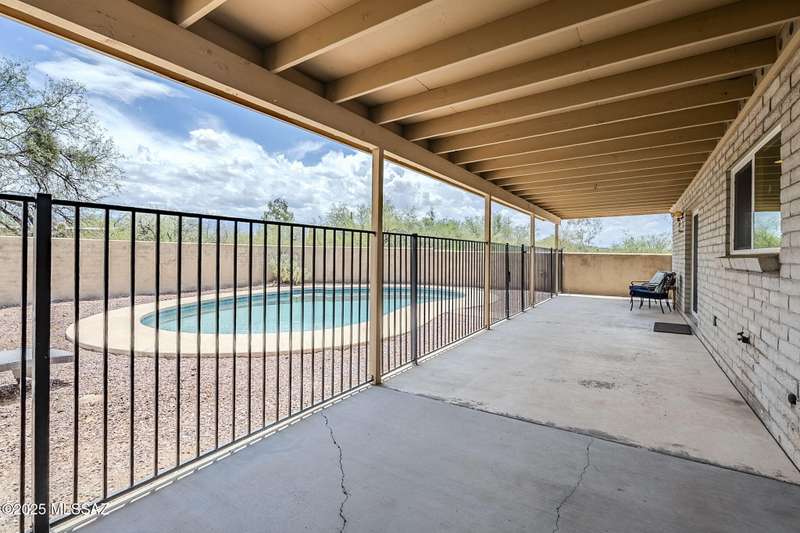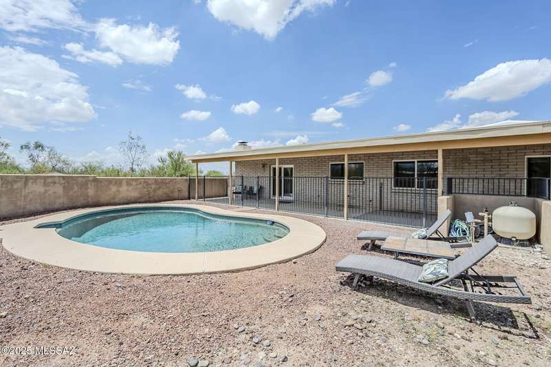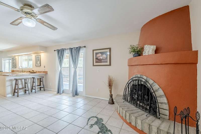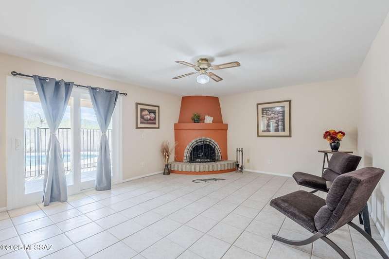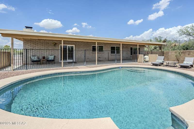 Tons of parking and Located in the Tanque Verde Valley! This 3 bed, 2 bath home offers 1,989 sq ft of comfort and functionality with Catalina Mountain views. The spacious, walled-in yard features a beautiful pool, extended covered patio, gated entrance and plenty of space to park an RV or store your toys. Inside, you'll find a warm and inviting atmosphere with ceramic tile featuring desert-themed inlays, laminate flooring, and a cozy beehive fireplace. The 2-car garage includes a workshop space and a 220v outlet for added versatility. Recent updates include windows, sliding glass door, and HVAC system with air purifying system for comfort year-round. The separate shed and fenced-in area are perfect for storage or pets. Conveniently located near shopping and dining. Take a look toda