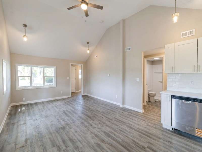 Spacious lot featuring a charming ranch-style home with 2 bedrooms and 1 full bath. This cozy residence includes a small front den, and a bright, open-concept living room, dining area, and kitchen. A detached garage adds extra convenience and storage.