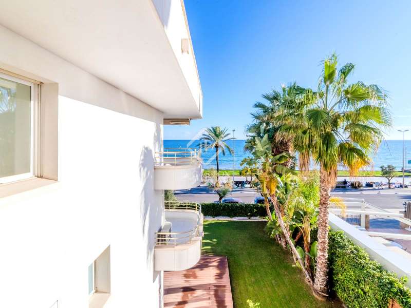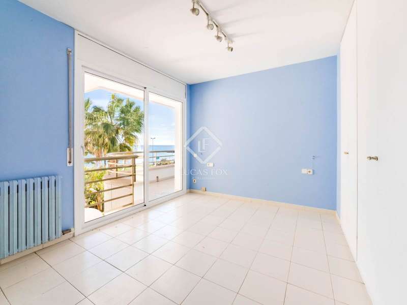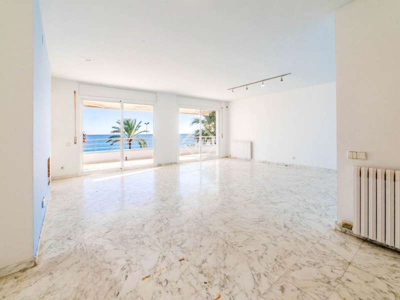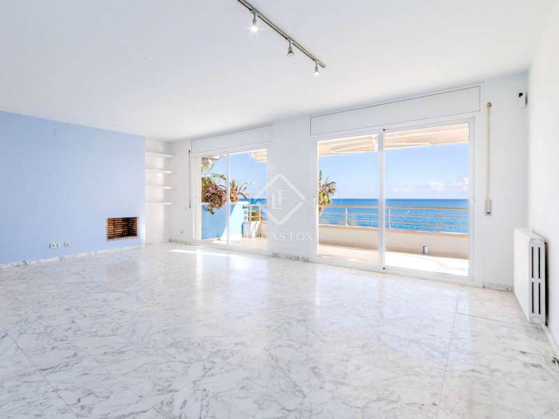 Located on the prestigious Passeig Marítim of Sitges, this spacious frontline apartment offers 152 m² of built space, including 130 m² of interiors and two terraces totalling 40 m². With direct views of the Mediterranean and its golden beaches just steps away, this property captures the essence of relaxed coastal luxury and represents a rare opportunity to own a residence in one of Catalonia’s most desirable seaside towns. Located on the third floor of a well-maintained building with lift access, the apartment offers the perfect canvas for transformation. Built in 1987, the residence exudes potential, inviting its future owner to modernise and personalise the interiors to contemporary tastes. The light-filled living and dining area opens onto a generous sea-facing terrace, creating a seamless connection between indoor comfort and outdoor relaxation. Four spacious bedrooms and two bathrooms offer flexibility for hosting guests or family, while the kitchen can easily be reimagined into a modern, open-plan design. Additional features include gas heating, fitted wardrobes, and a charming fireplace. Residents also enjoy access to beautifully landscaped communal gardens and a large swimming pool, ideal for enjoying Sitges’ year-round sunshine. A private parking space with direct lift access completes this offering. This seafront apartment combines exceptional location, space, and renovation potential, an ideal investment for international buyers seeking a second home or holiday residence by the beach. With its unbeatable promenade address, breathtaking sea views, and close proximity to Barcelona, this property promises not only an elevated Mediterranean lifestyle but also enduring long-term value in one of Spain’s most exclusive coastal markets. Please contact us for further information.