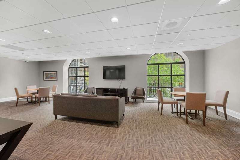 Welcome to this bright, high-floor 800+ square foot 1 Bedroom, 1 Bathroom condo located in the epicenter of River North! Upon entering, you are greeted with an expansive open concept floor plan offering a large, west-facing living room featuring laminate wood flooring with ample room for a work from home space along with a cozy dining room table. Floor to ceiling windows let in excellent afternoon sunlight and open to your huge balcony to enjoy your morning coffee or evening cocktail! Graciously sized kitchen offers a breakfast bar, granite countertops, under-mount sink, tile backsplash, and stainless-steel appliances! Spacious bedroom with two large closets, blackout shutter-style shades, and en-suite access to the bathroom! Updated bathroom with beautiful walk-in tile shower with sliding glass door and granite vanity. Additional features include a large foyer closet, Nest thermostat, and in-unit laundry! Garage parking space offered for additional 25K, must be bought with unit. Building offers 24-hour doorstaff, fitness center, and hospitality room. Assessments include cooking gas & heat, cable/internet, and parking! Excellent location near World-class dining and entertainment, multiple grocery stores, and Red Line CTA access.