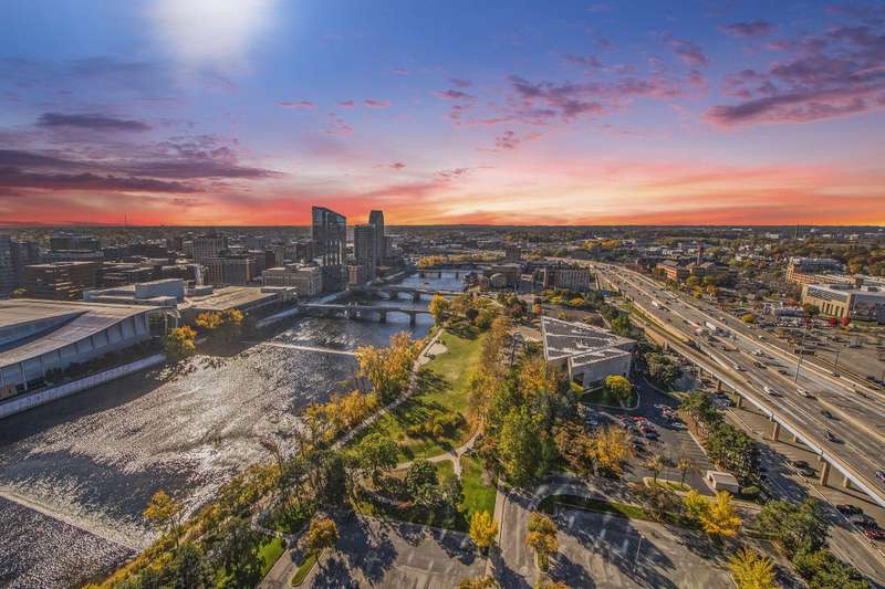 River House Condominiums!! Extremely sought after corner unit with views South and West with impressive floor to ceiling windows. This 14th floor south view looks over downtown Grand rapids and the Grand River including the new soccer stadium and amphitheater! The West view offers amazing sunset views and the change of seasons! The unit boasts 2 bedroom's and 2 full baths. Brand new LVP flooring throughout, spacious great room, kitchen with granite countertops and stainless steel appliances. The main bedroom is also spacious with walk-in closet and main bathroom with soaker tub and shower. River House amenities include 24/7 security/concierge, Club room, indoor pool & hot tub, onsite fitness center and 2 parking spots! Call today for a tour.