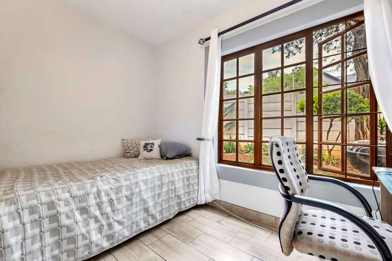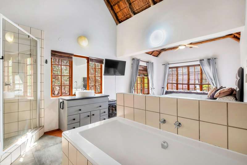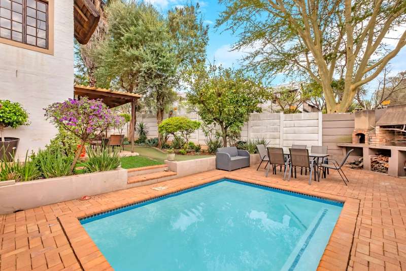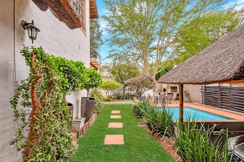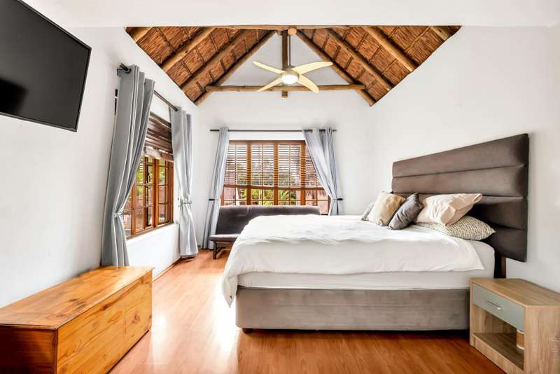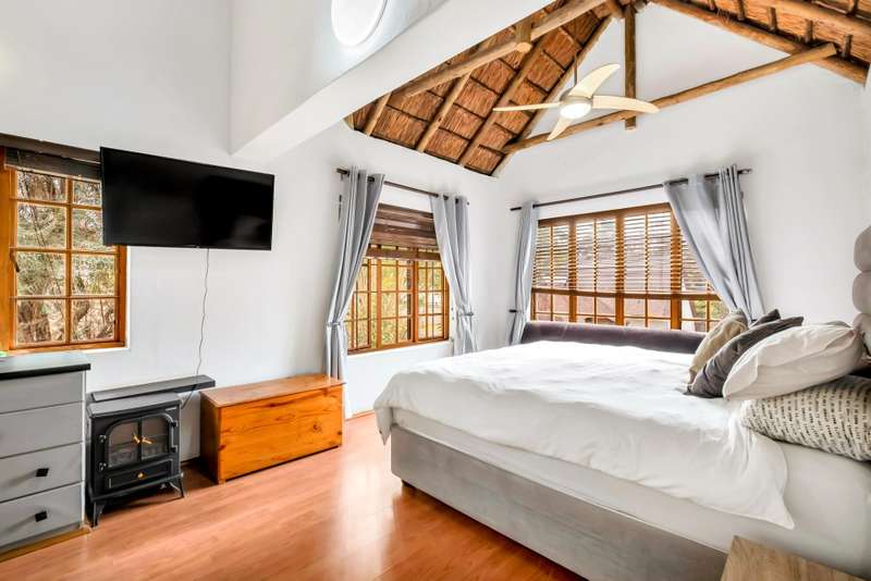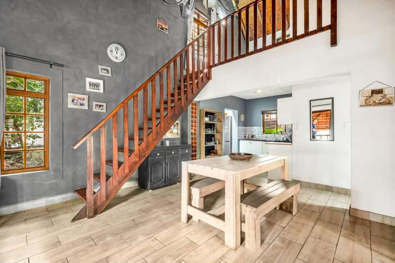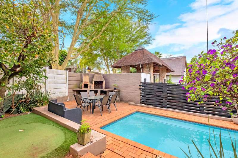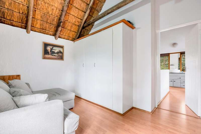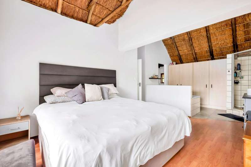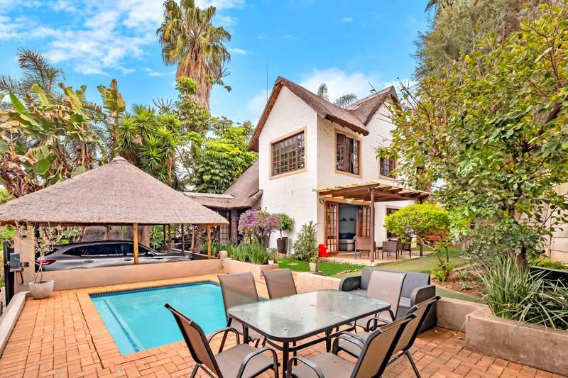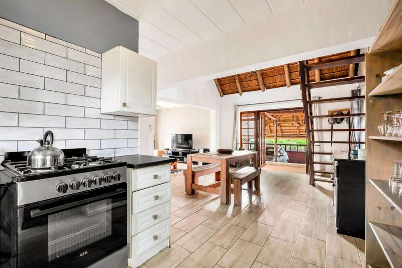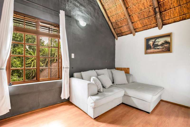 Step into charm and character with this lovely double storey thatch situated in the beautiful suburb of Boskruin. Spacious living areas with a patio and views of the lovely garden and private pool Kitchen is open plan with a separate scullery and a gas hob. The main bedroom is upstairs with an en-suite bathroom and study area or TV lounge. Downstairs is one bedroom and one bathroom. Plenty of garden space as well as a covered carport for two cars. This lovely cluster is priced to sell Make an exclusive appointment to view