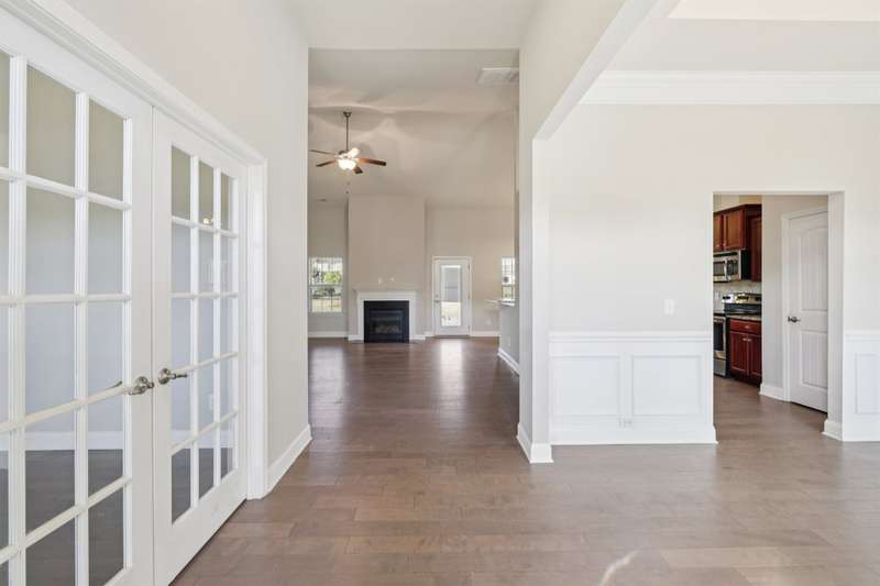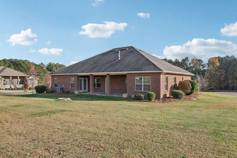 Full-brick ranch with office and split floor plan!Enjoy covered front and back porches and a thoughtfully designed layout in this Adams Homes 2169 floorplan, offering both comfort and functionality.Step inside to an inviting foyer that opens to a spacious family room?perfect for entertaining or relaxing with loved ones. The dining area seamlessly connects to a well-appointed kitchen featuring modern appliances, ample cabinet space, and a convenient breakfast bar. Vaulted ceilings in the main living area create an open, airy feel with a touch of luxury.The primary suite is a peaceful retreat, complete with a large bedroom, two walk-in closets, and a spa-like en-suite bath. Three additional bedrooms on the opposite side of the home offer privacy and plenty of space for family or guests.Enjoy outdoor living year-round on the large covered patio, ideal for relaxing or entertaining. A two-car garage provides added convenience and storage.With its functional layout and timeless design, the 2169 floorplan by Adams Homes delivers comfortable, stylish living at its best!