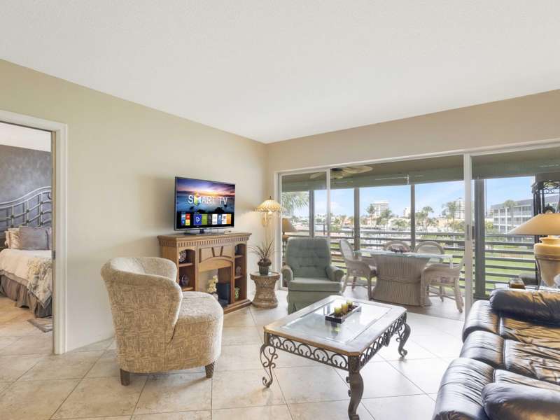 Stunning Waterfront Condo with Private Marina ! Experience coastal living at its finest in this beautifully renovated 2 bedroom, 2 bath condo located in the heart of East Delray. Nestled along the Intracoastal, this light filled residence offers direct water views and access to a private marina ~a rare find for boating enthusiasts! Step inside to an open concept layout featuring chef inspired kitchen with bar area. The living and dining areas flow seamlessly to screened balcony overlooking pool and marina area~ perfect for morning coffee or sunset cocktails. The primary suite offers large walk in closet and renovated en suite bath. The second bedroom is also en suite and is ideal for guests or home office. Community features include...see MORE for additional remarks
