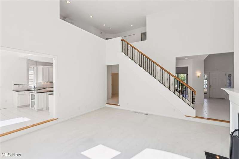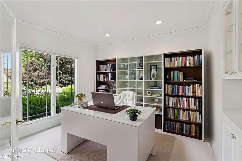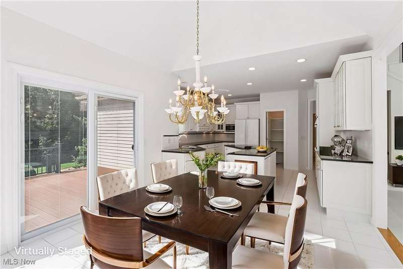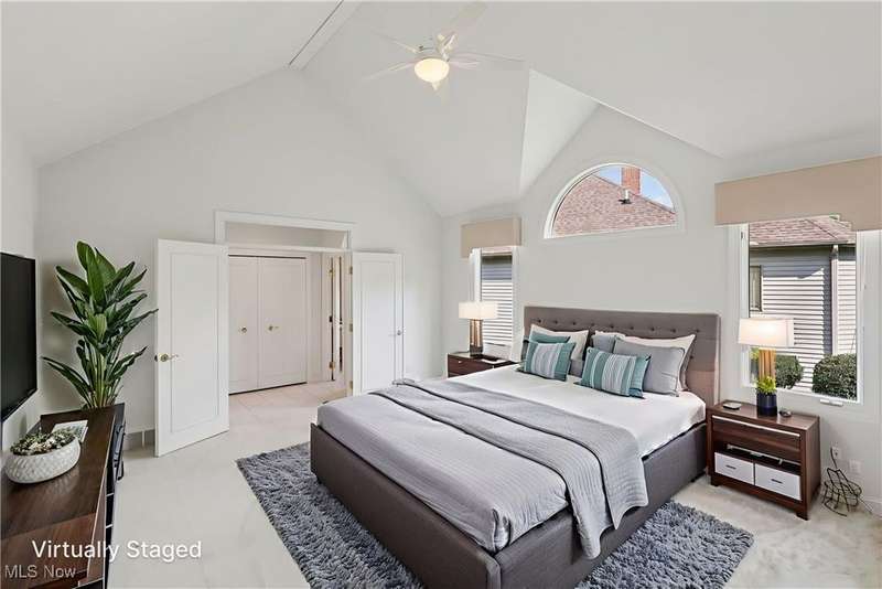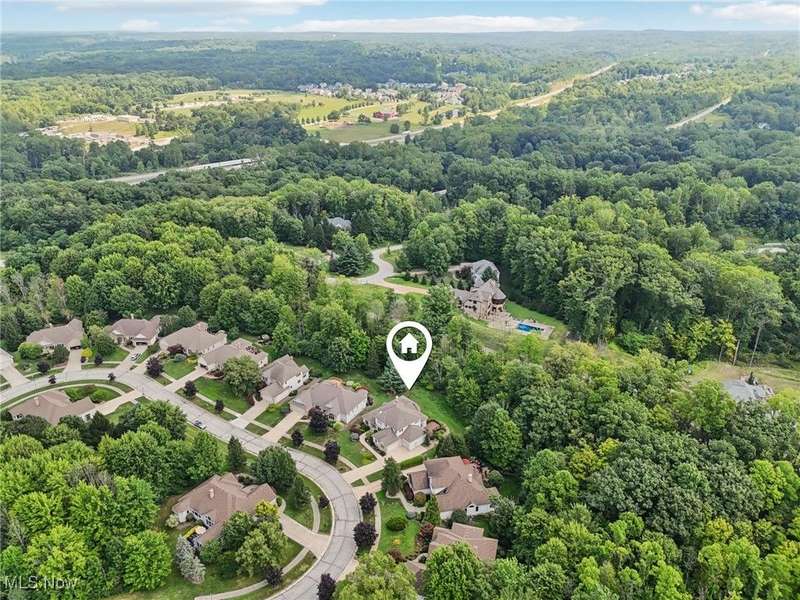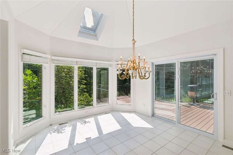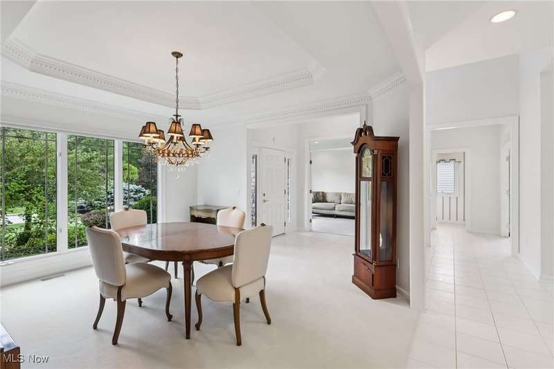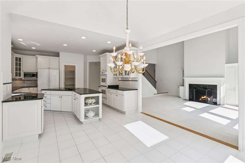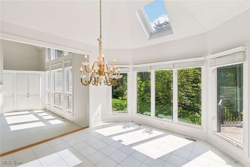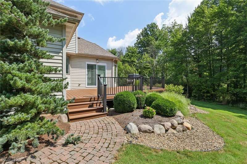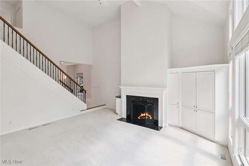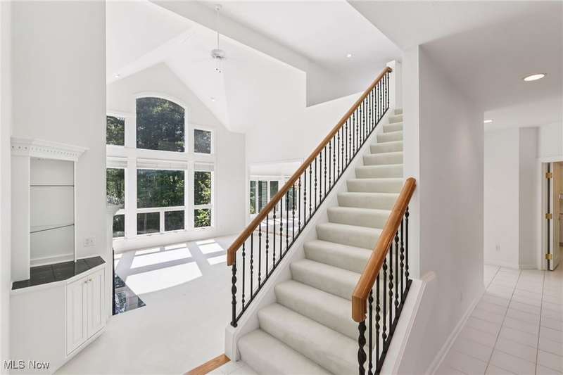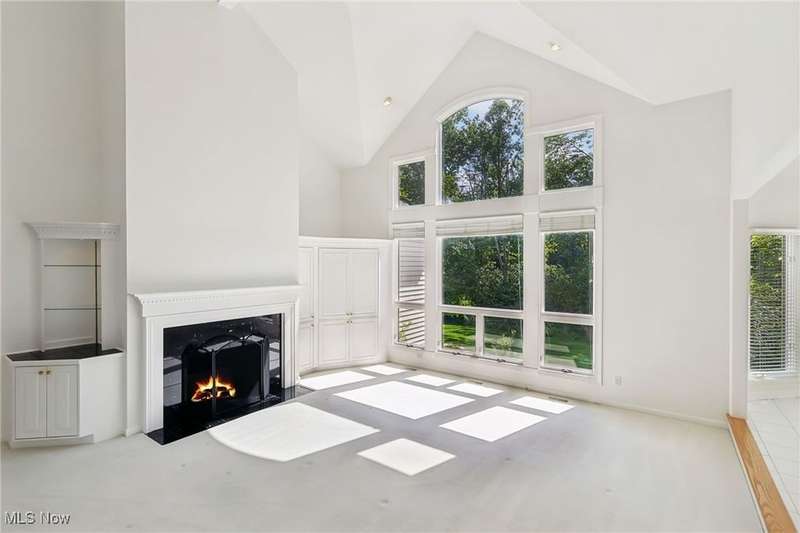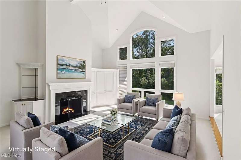 Open, bright, and low maintenance modern living best describe this beautifully designed 3 bedroom, 3.1 bath, 3 car garage cluster home in Solon's Thornbury neighborhood. This home was custom built by Dinallo & Wittrup and features formal dining room and office off the foyer in the front of the home. The great room in the center of the home is light and bright with 2-story ceilings, built-in shelving, a gas fireplace, and a stunning picture window showcasing the thickly wooded backyard while opening seamlessly to the expansive kitchen with white cabinetry, dark granite countertops, walk in pantry, center island, and breakfast nook outlined by windows and the new sliding glass door and composite deck (2024). The first floor primary suite offers comfort and convenience, with a glamour bath and extra large walk in closet. The laundry room is on the main level for true one floor living. The second floor has a large loft and two additional bedrooms with a jack and jill bathroom providing space for family or guests. The lower level has a rec room that wraps around and includes an area with cabinets and countertops, the 3rd full bathroom, and garden level windows bringing even more natural light. The unfinished basement storage area has a walk up to the 3 car garage. This one owner cluster home provides low maintenance living with landscaping and snow removal provided.