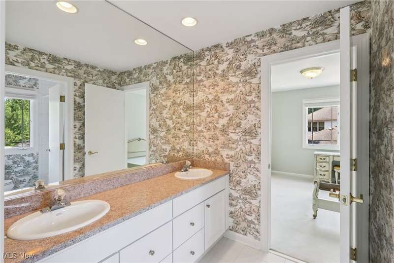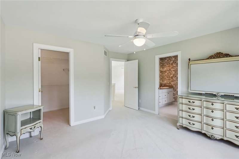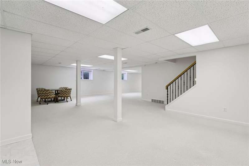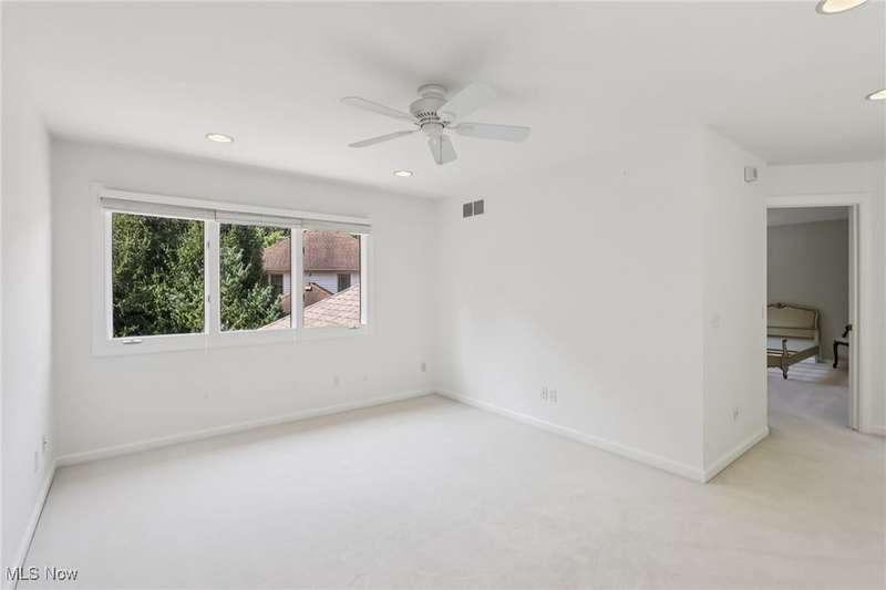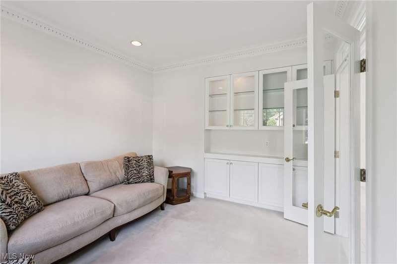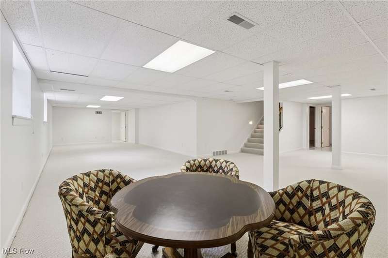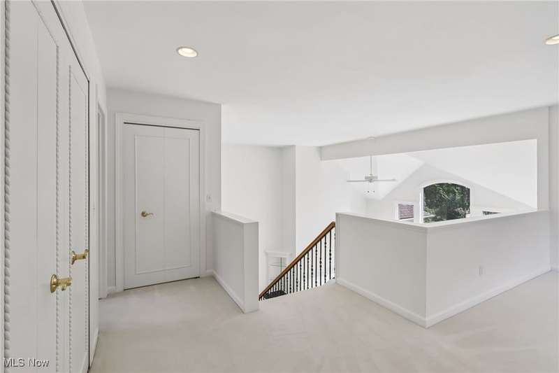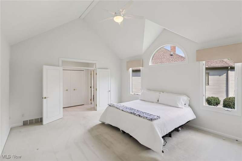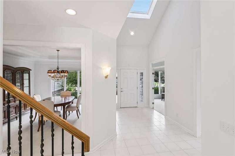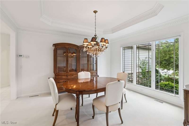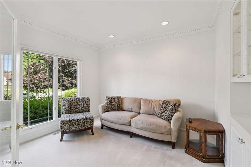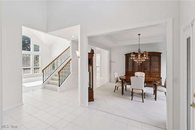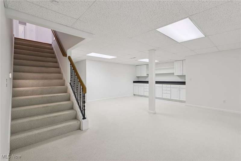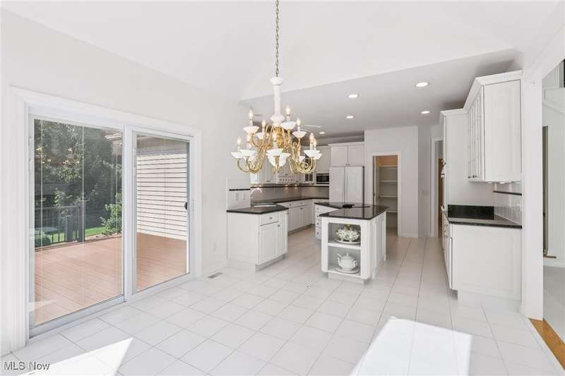 Open, bright, and low maintenance modern living best describe this beautifully designed 3 bedroom, 3.1 bath, 3 car garage cluster home in Solon's Thornbury neighborhood. This home was custom built by Dinallo & Wittrup and features formal dining room and office off the foyer in the front of the home. The great room in the center of the home is light and bright with 2-story ceilings, built-in shelving, a gas fireplace, and a stunning picture window showcasing the thickly wooded backyard while opening seamlessly to the expansive kitchen with white cabinetry, dark granite countertops, walk in pantry, center island, and breakfast nook outlined by windows and the new sliding glass door and composite deck (2024). The first floor primary suite offers comfort and convenience, with a glamour bath and extra large walk in closet. The laundry room is on the main level for true one floor living. The second floor has a large loft and two additional bedrooms with a jack and jill bathroom providing space for family or guests. The lower level has a rec room that wraps around and includes an area with cabinets and countertops, the 3rd full bathroom, and garden level windows bringing even more natural light. The unfinished basement storage area has a walk up to the 3 car garage. This one owner cluster home provides low maintenance living with landscaping and snow removal provided.
