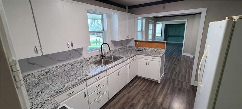 Well cared for house with many updates and still lots of potential. New flooring throughout nearly the entire house with updated main floor bathroom. The house sits on two lots, with plenty of space to a quiet, country feel while being in town.