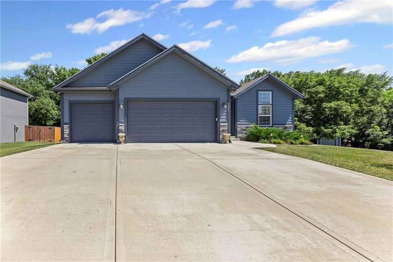 PIPER LANDING PRIZE! NEWER Reverse 1.5 Story w/Pretty Treed Views! Enjoy THREE Main Level Bedrooms * Main Level Laundry Room * Fabulous Finished Daylight Basement w/HUGE 2nd Living Area, Wet Bar w/Lighted Upper Cabinets, 4th & 5th Bedrooms + 3rd Full Bath * King Size Owners Suite w/Beautiful Upgraded Tile, Walk-In Closet + Jetted Tub * Generous Storage Space Including Coat Closet, Pantry, Additional Storage Under Front Porch * Granite Kitchen Counters * Delightful Covered Deck * Lovely Community w/Pool, Ponds & Greenspace * Convenient Location Near Downtown KC, Johnson County, North KC, KCI Airport, Shopping, Dining & Entertainment!