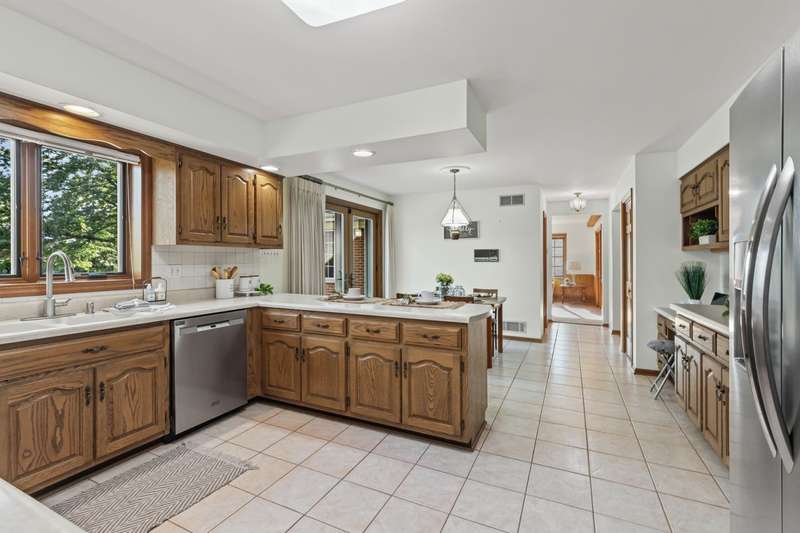 Welcome to this fabulous, custom built home in the Pluskota Subdivision of Orland Park. A rare offering, this home has been loved and cared for by one family since its construction, and sits on a high point, with great views of its surroundings. This property features 5 beds, office, 3 full+2 half baths, a fully finished basement and an oversized 2 car garage. The entrance welcomes you with a bright, 2-story foyer and a gleaming staircase leading to the second floor. The main floor offers multiple spaces for family living and entertaining. The living and family room is divided by a beautifully designed pocket doors, and each room features a picturesque wood burning fireplace. The family room has a wet bar and features a beamed and vaulted ceiling. The living room floor has been reinforced to accommodate the weight of a grand piano. The large dining room, detailed with durable and elegant teak parquet flooring, offers space for any size of holiday/family gatherings. The kitchen is every chef's dream, with plenty of solid hardwood cabinets and counterspace, with new, stainless steel appliances and 2 pantry closets. A spacious breakfast table area will lead you through two oversized, newly installed Pella French doors to a sunny patio and over half acre yard, lined by mature trees & an equipped in-lawn sprinkler system. The hallway east of the kitchen leads to the laundry, full bathroom, and a quiet office, which may serve as guest private quarters, or an in-law arrangement. One area you will be sure to love, is the 2nd floor master suite with its deluxe spa-like bathroom, vanity nook, large walk-in closet and generously sized, bright master bedroom. Three additional bedrooms, as well as full hallway bathroom, located on the west side , completes the 2nd level. The fully finished basement will surprise you with an additional recreational family area, party room with extra cabinets, sink and counterspace for a potential kitchenette, half bathroom, 5th bedroom, wine cellar & extra storage room. The pride of ownership shines through every detail of this home: from double-stud walls (extra insulation), dual heating and cooling (energy efficiency), to incredible woodwork through the house! This home is all electric. There is gas line available just next door. Heating and cooling is provided by 2 newly installed, energy efficient and environmentally friendly heat pumps. This well maintained home is located in a top rated, award-winning school district, close to all kinds of dining, shopping, hiking/biking trails, and more!