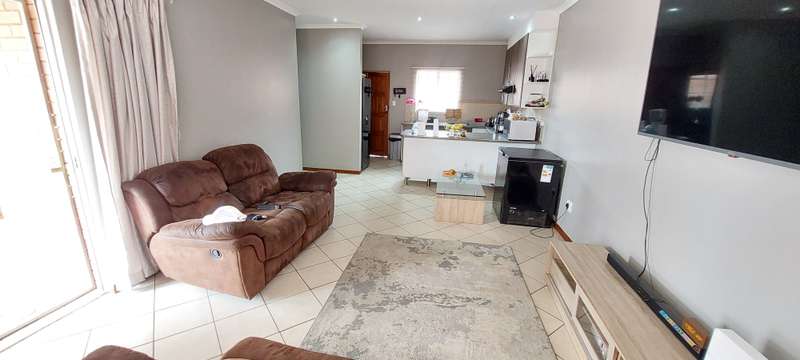 Charming Family Home in Prime Monavoni Location This modern family home offers the perfect blend of comfort, convenience, and style. The spacious open-plan living area seamlessly flows into a private patio, providing the ideal space to unwind and entertain family and friends. The well-appointed kitchen is perfect for creating culinary delights, making every meal an enjoyable experience. The home features 3 generously sized bedrooms, each with built-in wardrobes, ensuring plenty of storage space. The main bedroom includes a convenient en-suite bathroom, while the other two bedrooms share a beautifully designed family bathroom. Outside, the property boasts a spacious, enclosed yard complete with a built-in braai area—perfect for outdoor gatherings. Additionally, there are 2 covered carports and ample visitor parking for added convenience. Located in the sought-after Monavoni area, this home is just a stone’s throw away from shopping complexes, a private hospital, and a selection of public and private schools, ensuring all your daily needs are within easy reach. Perfect for families seeking modern living in a prime location, this home is a must-see!